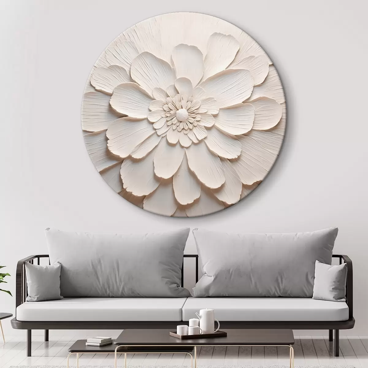 Ronde schilderijen Grote witte bloem met volumineuze bloemblaadjes Nr r43364