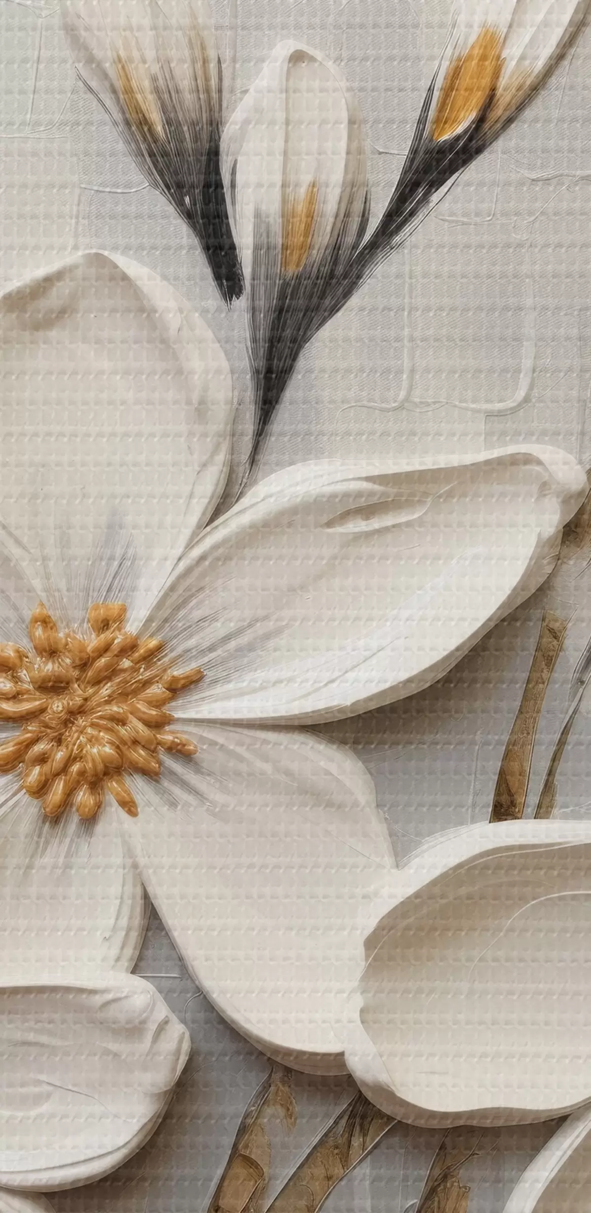 Ronde schilderijen Witte volumineuze bloemen in schilderstijl met grote penseelstreken Nr r43366
