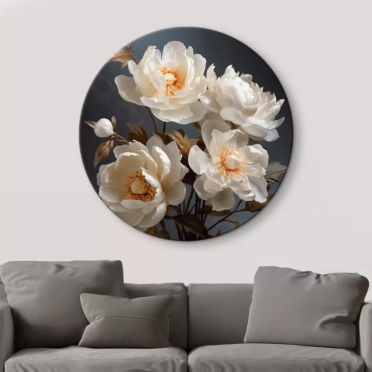 Ronde schilderijen Samenstelling van witte pioenen r43368