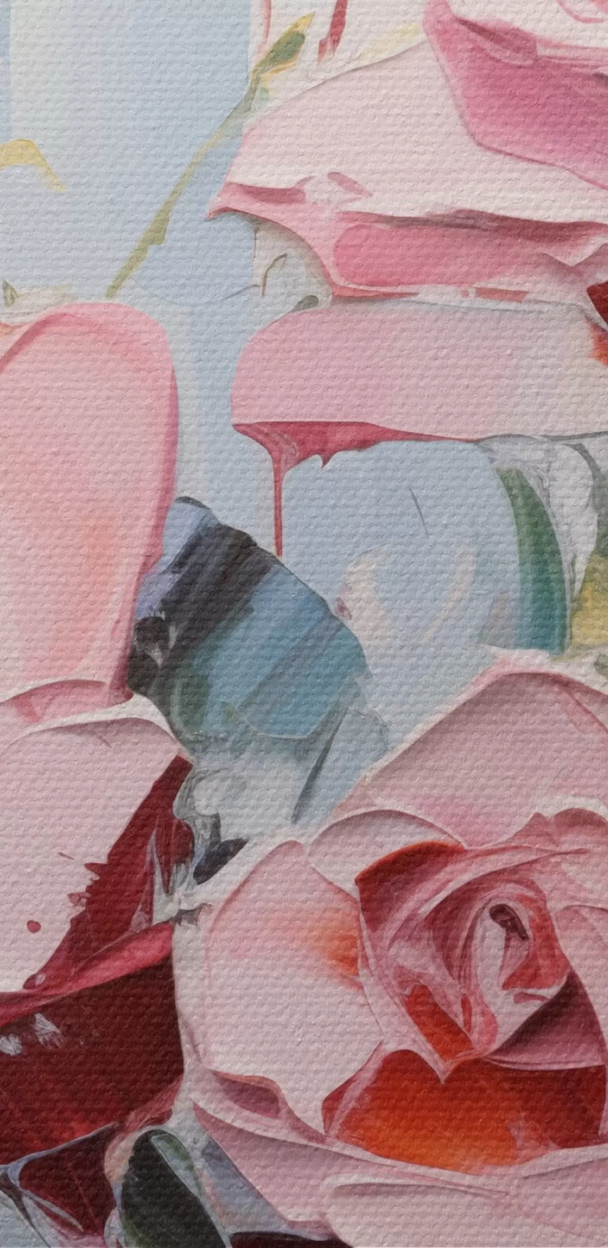 Het schilderij kan direct na ontvangst worden opgehangen. Het schilderij wordt opgespannen op een 2 cm breed houten spieraam.