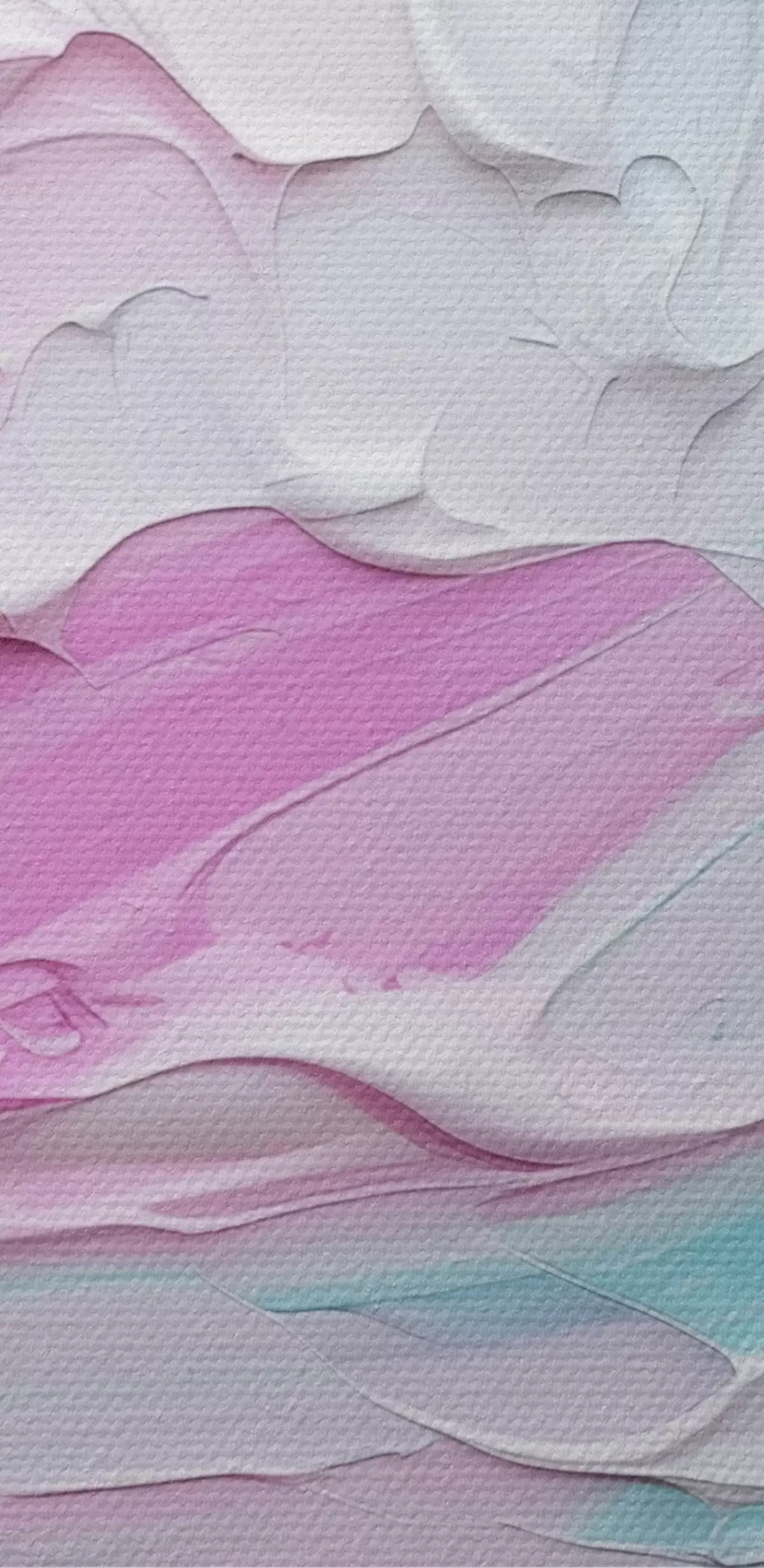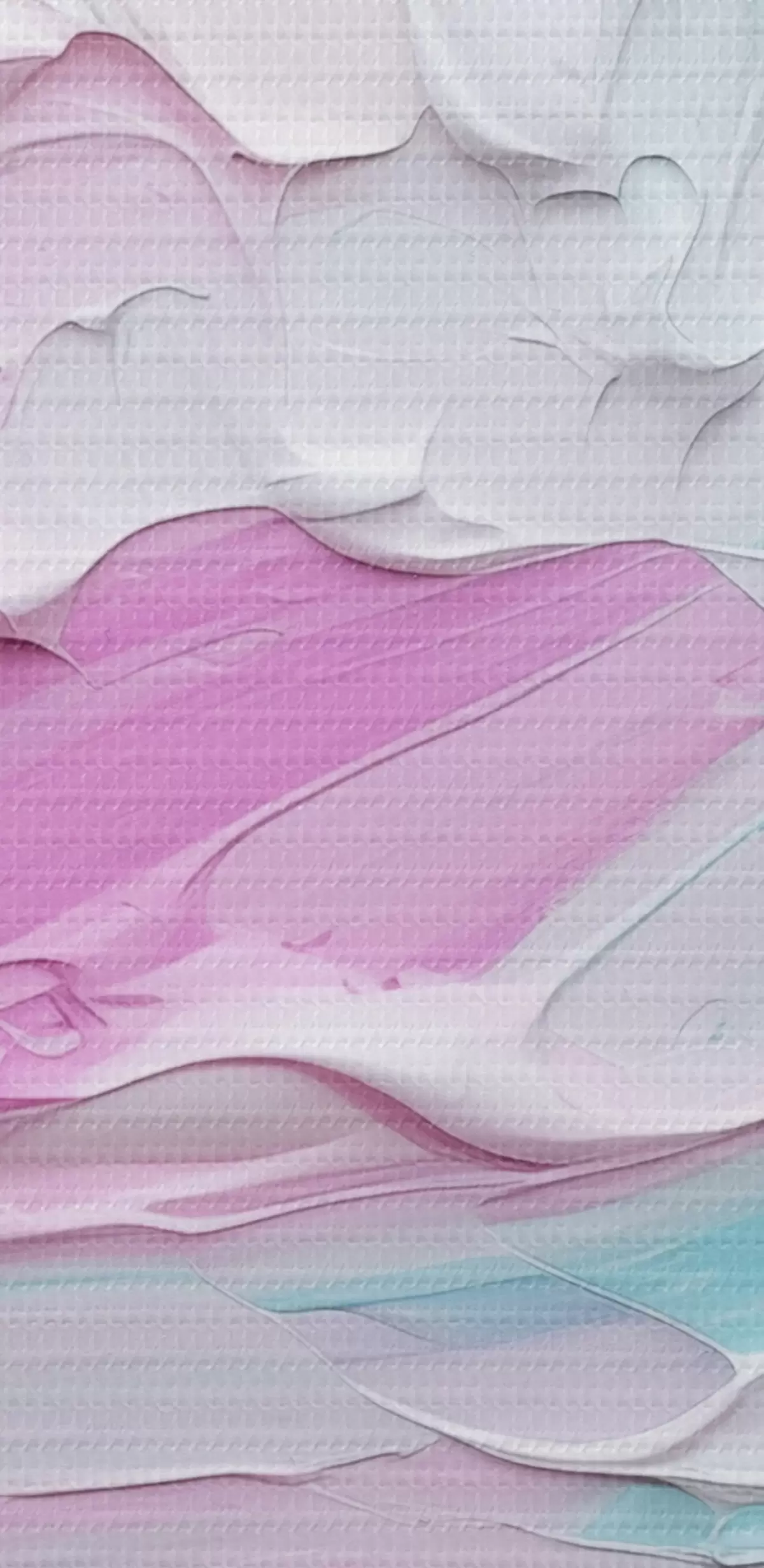Ronde schilderijen Een abstract olieverfschilderij met dikke streken roze, witte en turquoise verf, waardoor een structuureffect ontstaat Nr r43393