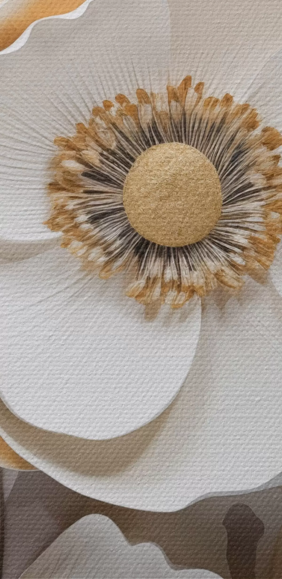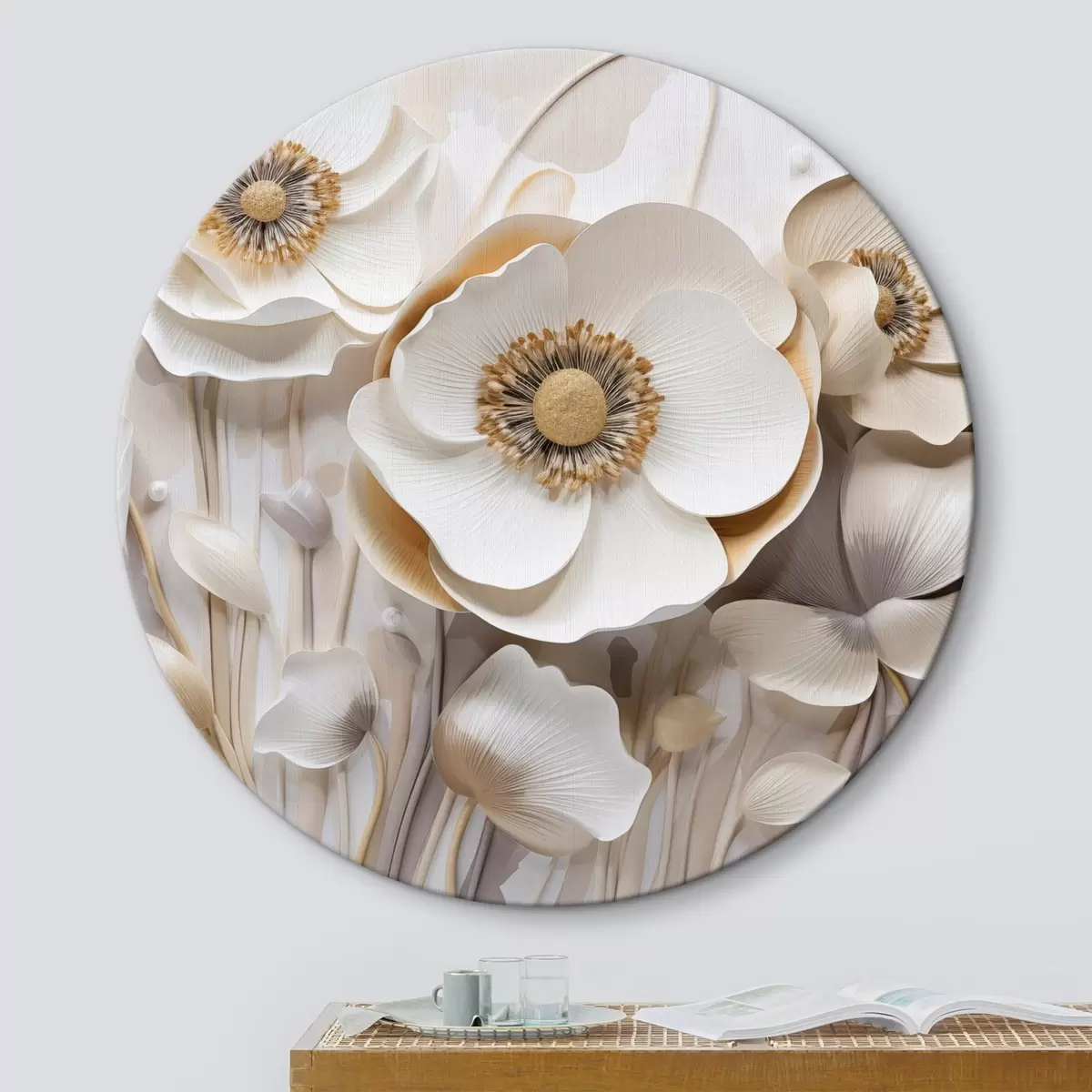 Ronde schilderijen Witte anemoonbloemen met gele harten, met minimalistische achtergrond, waardoor een delicaat bloemenontwerp ontstaat Nr r43400