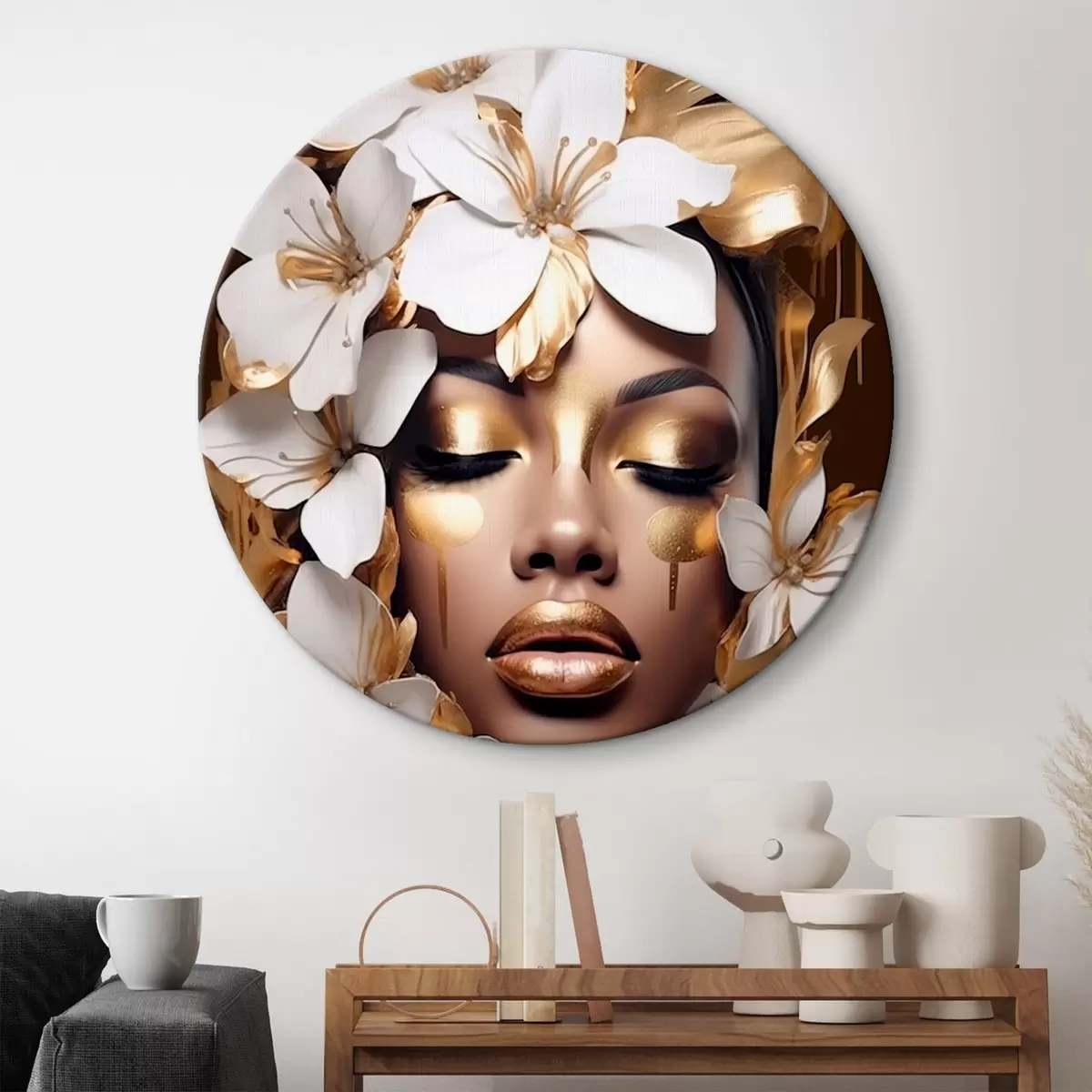 Ronde schilderijen Vrouwenportret met florale elementen Nr r43417