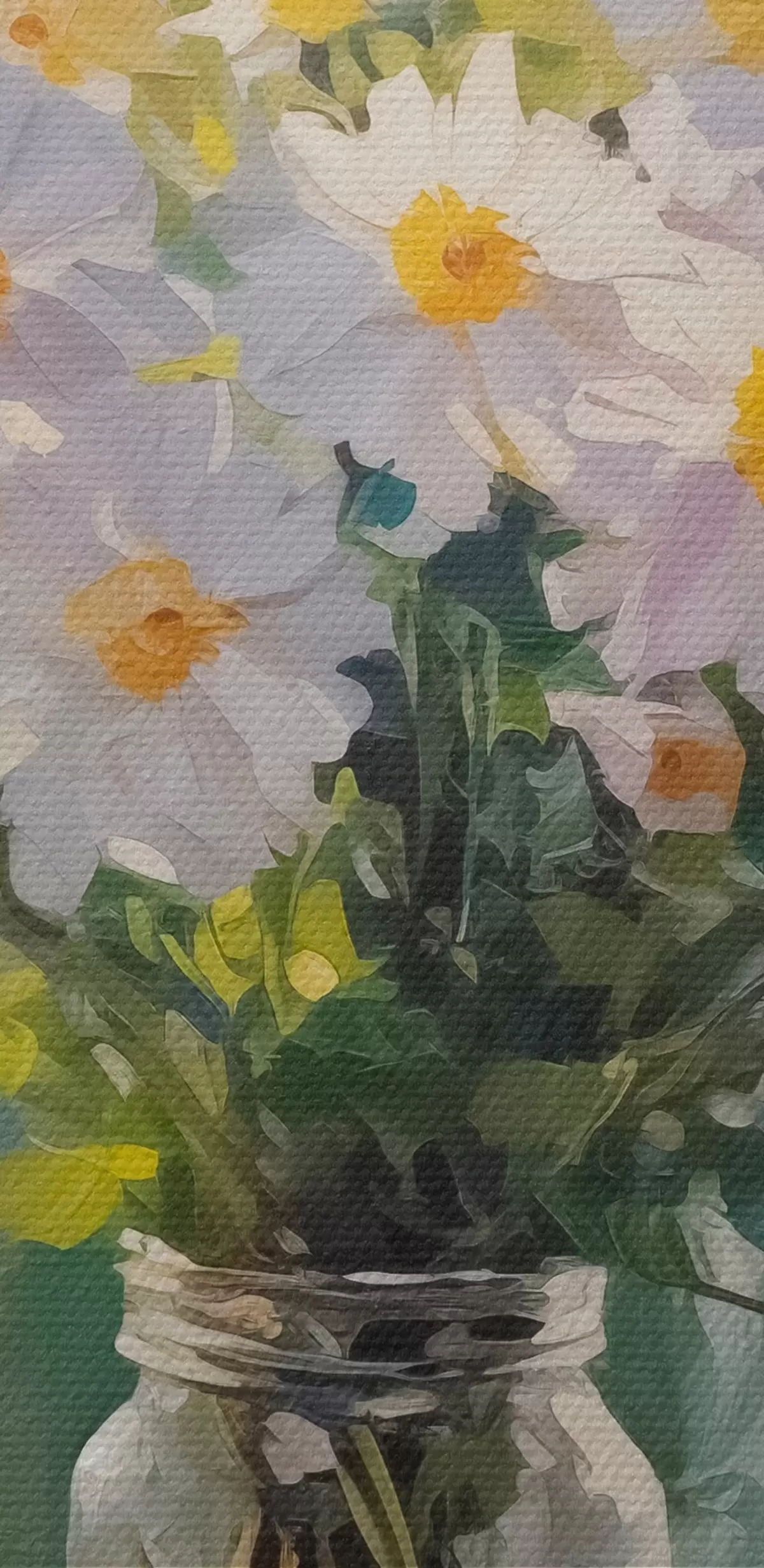 Ronde schilderijen Madeliefjes in een vaas imitatie van schilderij Nr r43434
