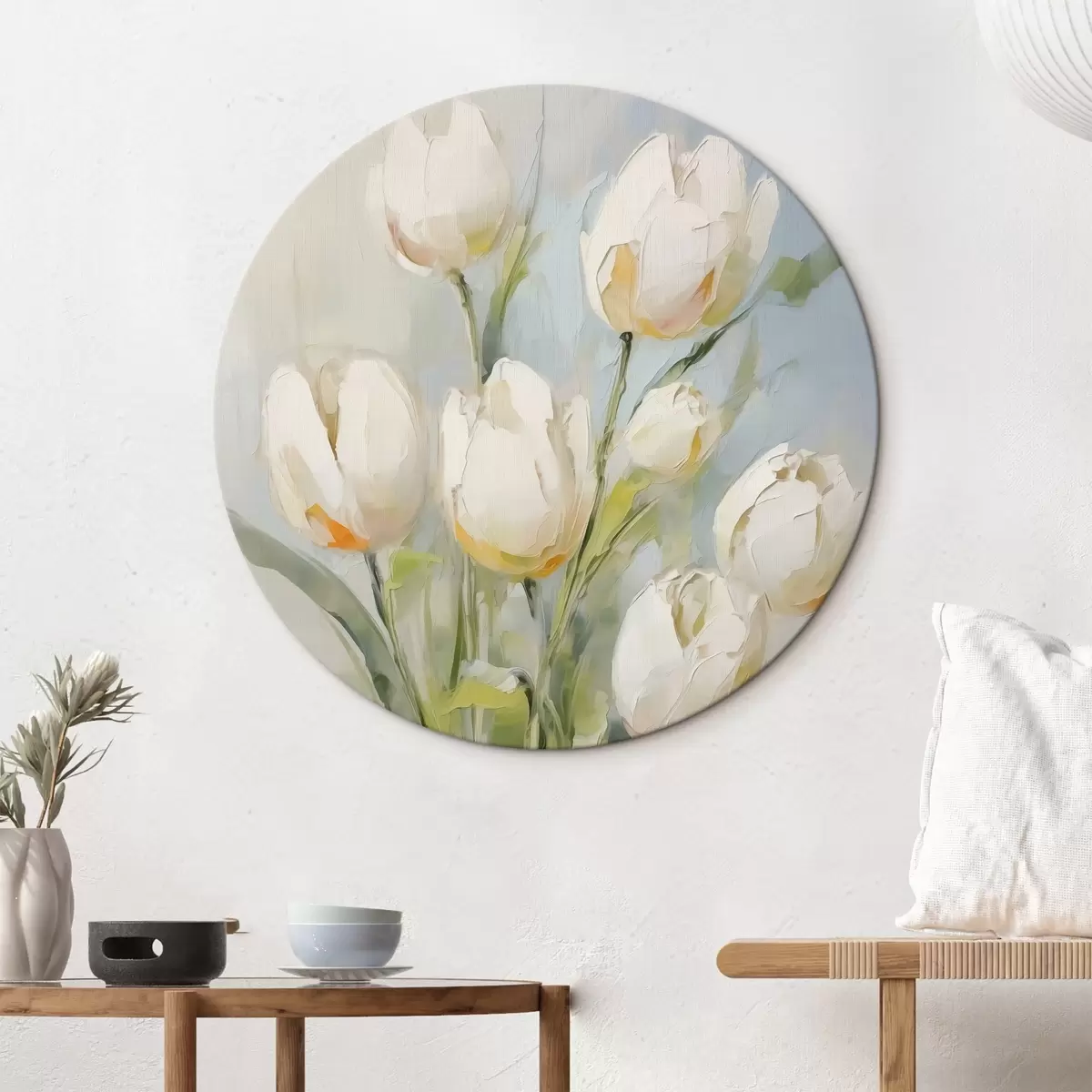 Ronde schilderijen Witte tulpen imitatieschilderij Nr r43435