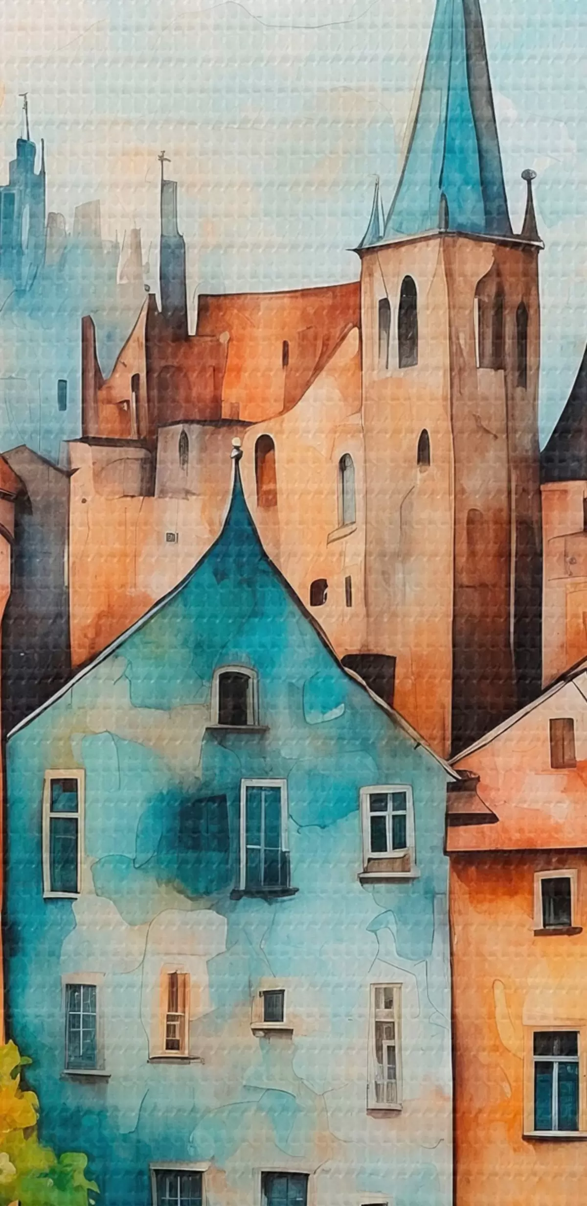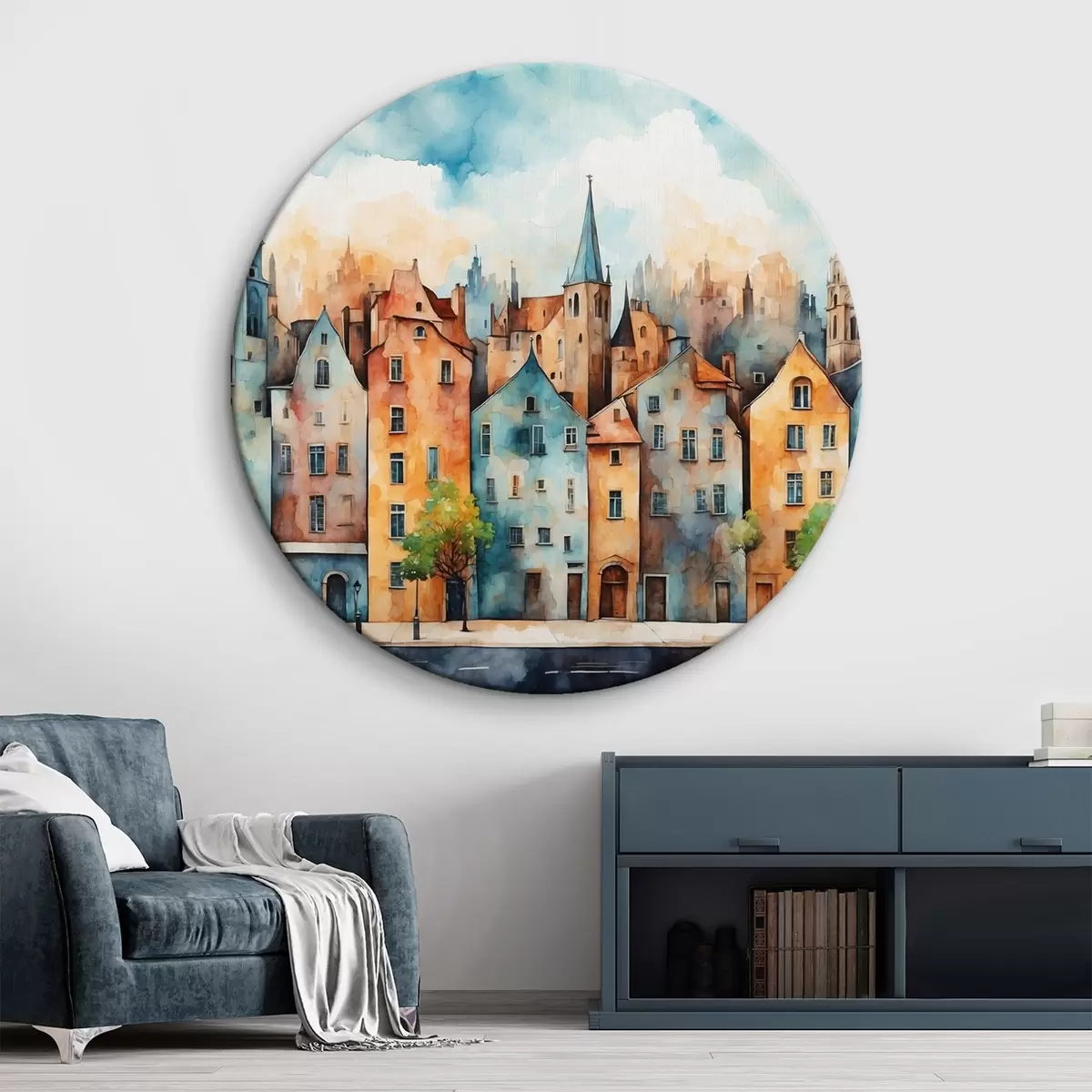 Ronde schilderijen Europese stad in stijl aquarel schilderij Nr r43441