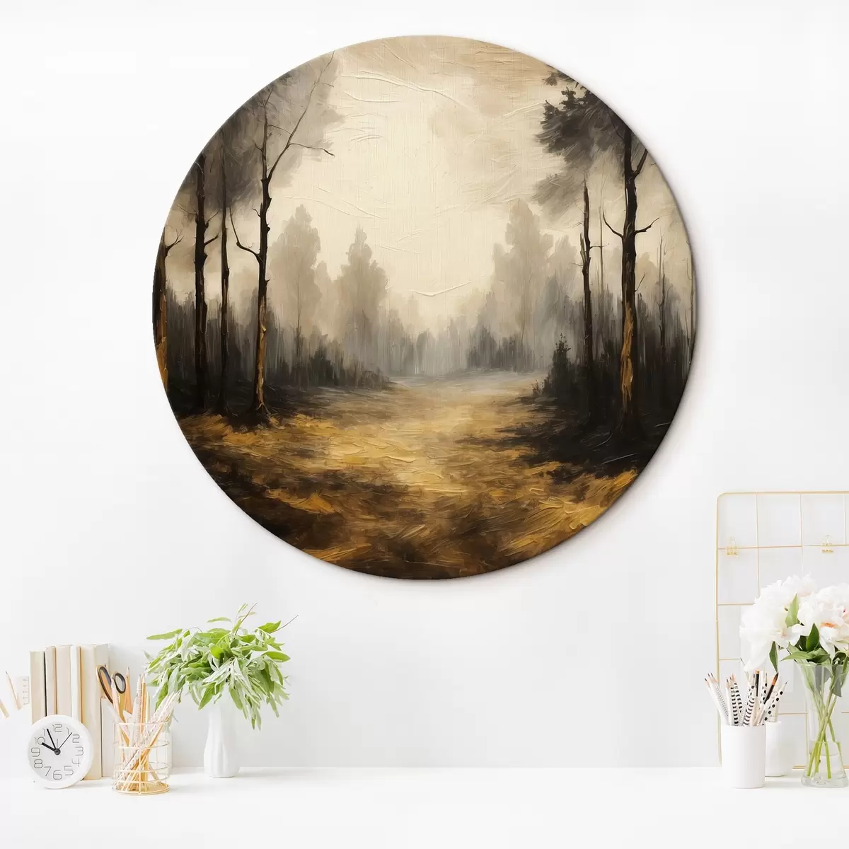 Ronde schilderijen Zwart bos in acrylschilderstijl Nr r43448