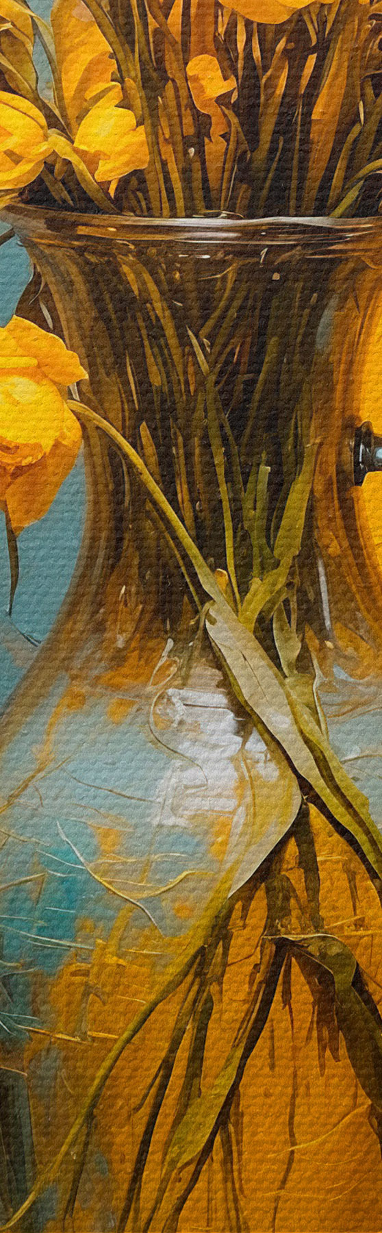 Er zijn drie soorten materiaal te bestellen: Economic Canvas - een dicht en duurzaam materiaal voor digitaal printen, identiek aan schildersdoek, waterdicht oppervlak, realistische weergave van details, materiaal met gemiddelde korrel. Premium Canvas - de textuur lijkt op die van schildersdoek (verweven kleine draden). Zachte, gedetailleerde reproductie van de afbeelding op een mat oppervlak. Eco-Premium - hoogwaardige 100% katoenen stof. Dankzij de natuurlijke katoenvezels is het materiaal duurzaam en slijtvast. Uitstekende kleurweergave en detail.