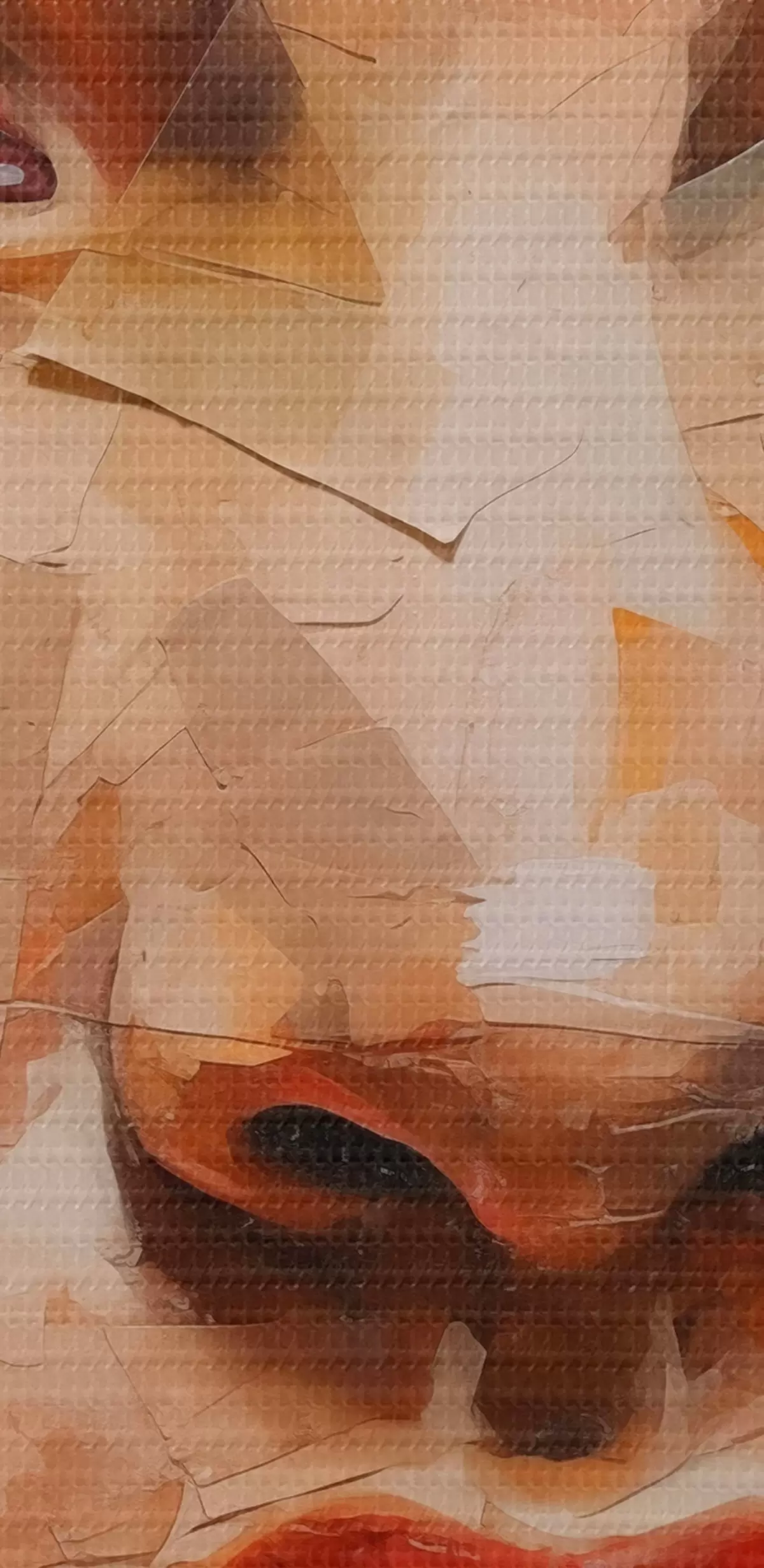 Ronde schilderijen Meisjesgezicht gemaakt van kranten Nr r43467