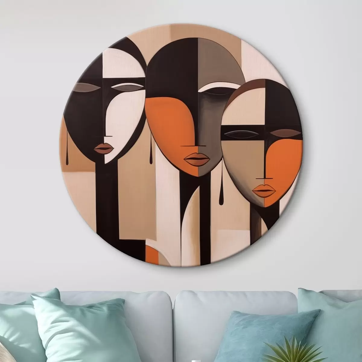 Ronde schilderijen Abstracte gezichten in harmonieuze kleuren Nr r43525