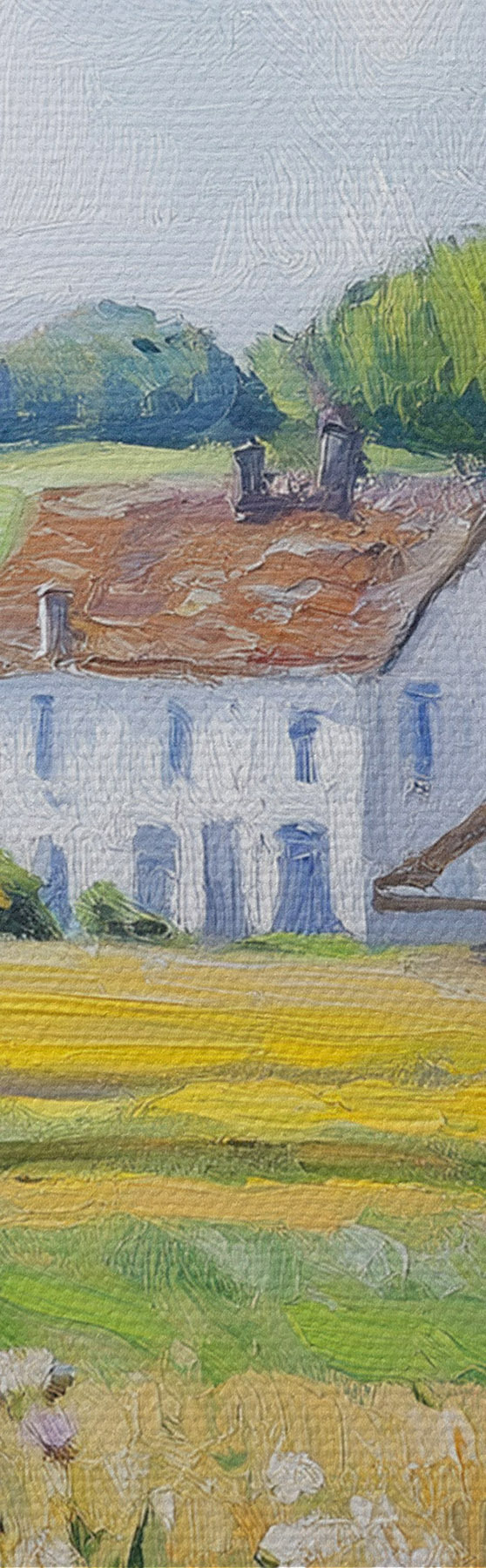 Het schilderij kan voorzichtig worden schoongeveegd met een droge zachte doek of spons; het wordt niet aanbevolen om natte producten te gebruiken. Het gebruik van een vochtige spons is alleen toegestaan als het schilderij gevernist is.