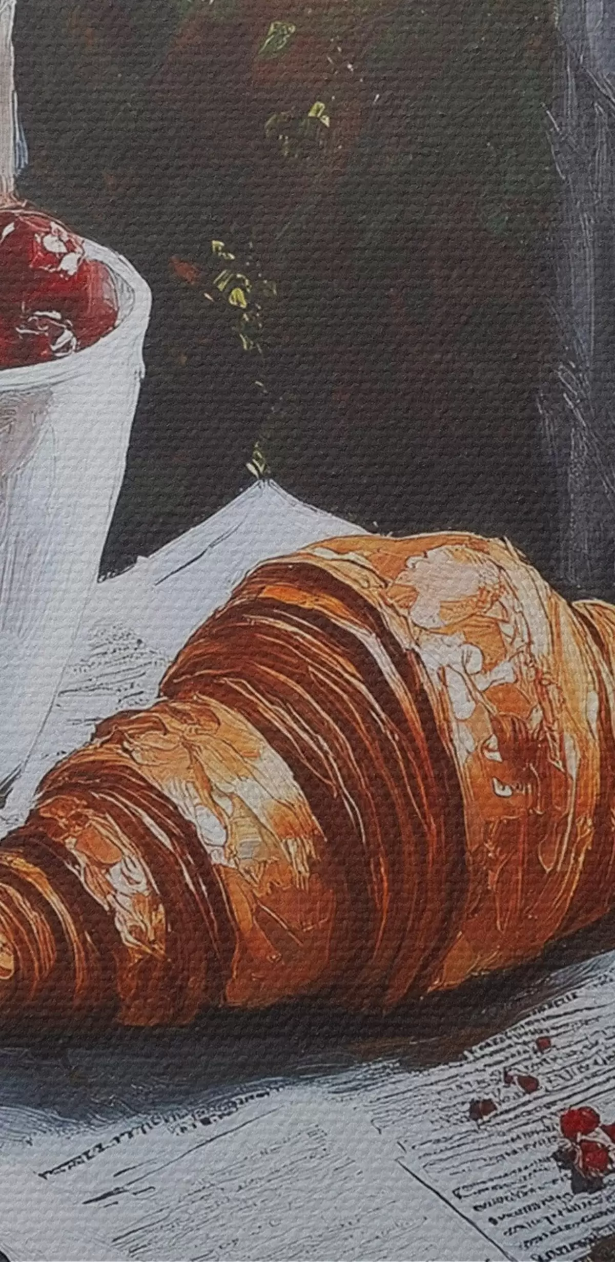 Ronde schilderijen Ochtend in Parijs, koffie met croissants, stadsgezicht, olieverf tekening r43892