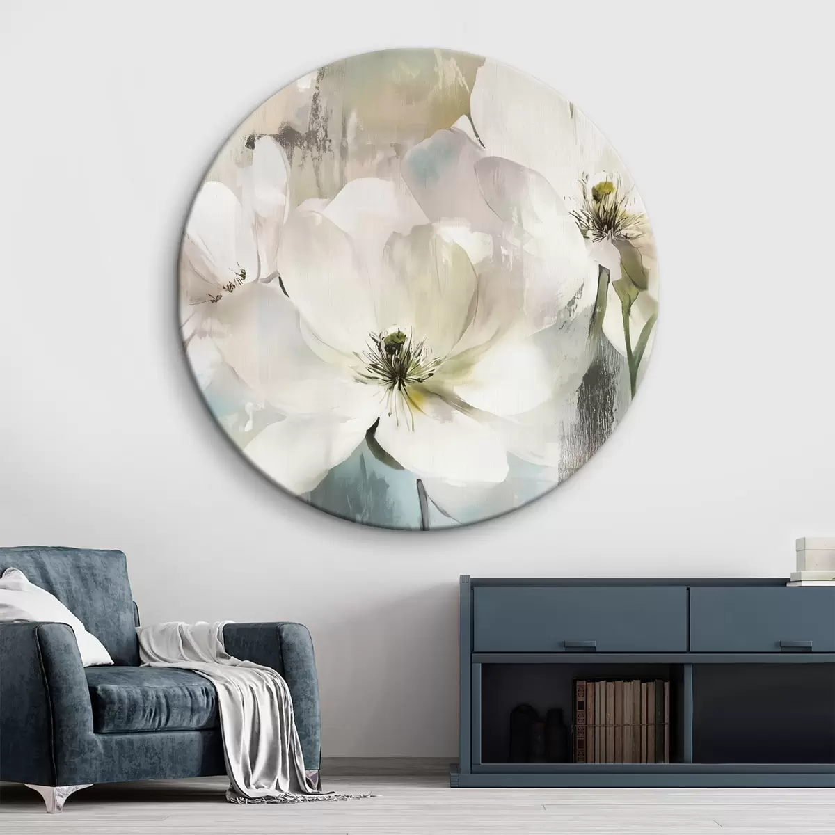 Ronde schilderijen Witte bloemen in olieverfstijl Nr r43903