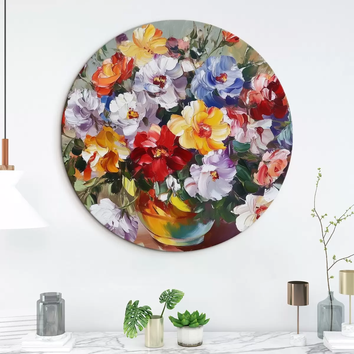 Ronde schilderijen Veelkleurige bloemen in een vaas in olieverfstijl Nr r43909