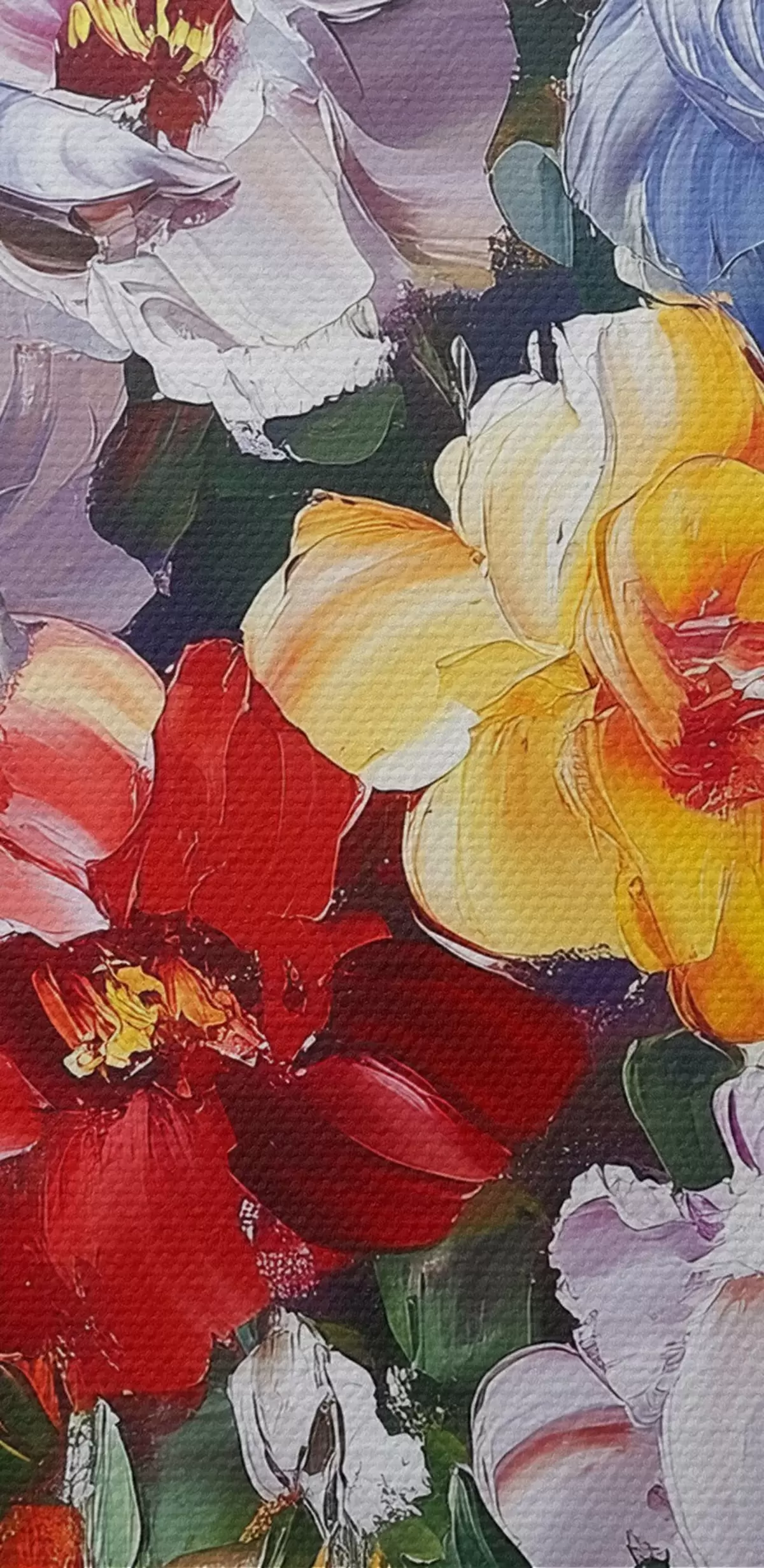 Het schilderij kan direct na ontvangst worden opgehangen. Het schilderij wordt opgespannen op een 2 cm breed houten spieraam.
