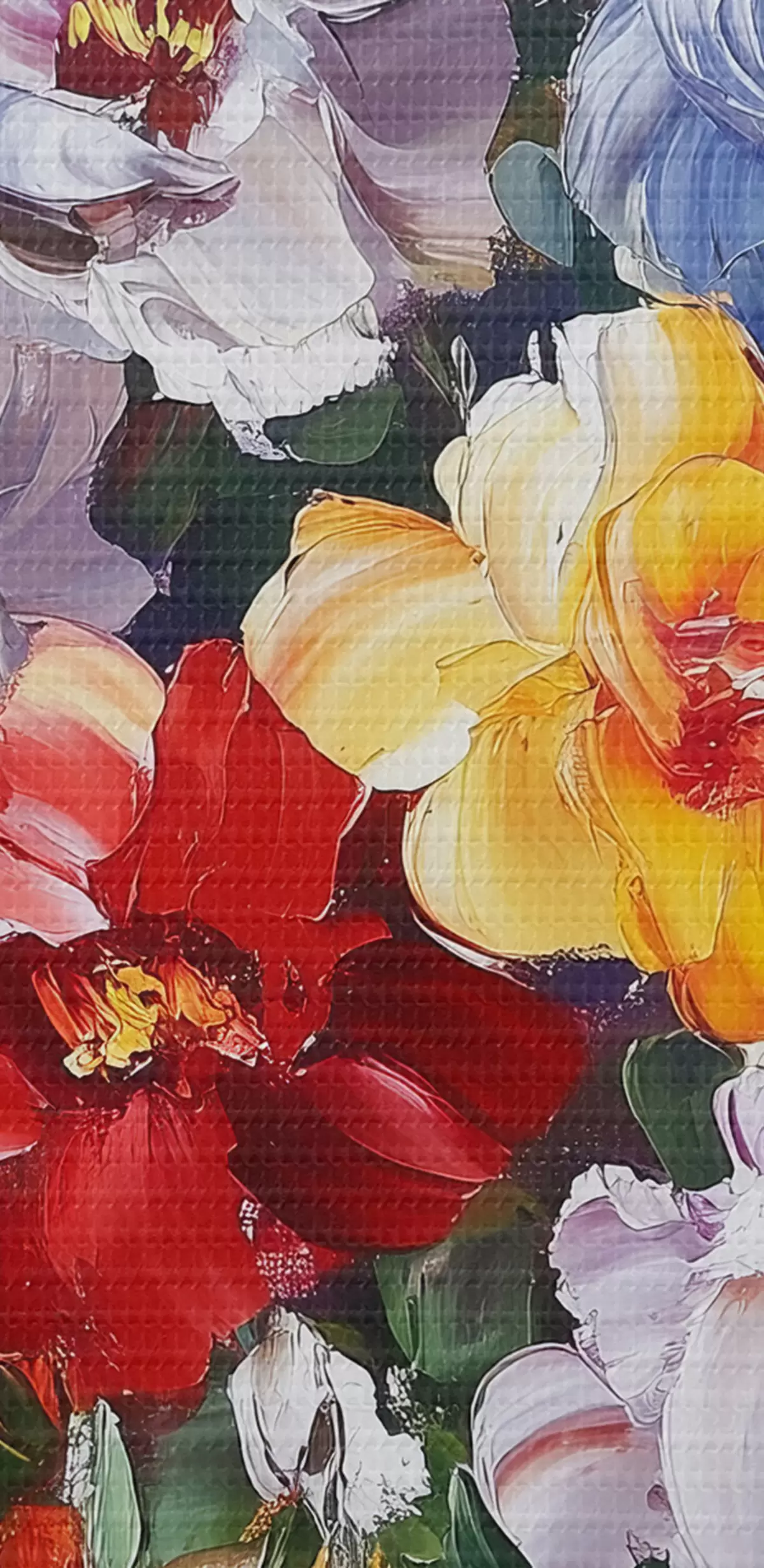 Er zijn drie soorten materiaal te bestellen: Economic Canvas - een dicht en duurzaam materiaal voor digitaal printen, identiek aan schildersdoek, waterdicht oppervlak, realistische weergave van details, materiaal met gemiddelde korrel. Premium Canvas - de textuur lijkt op die van schildersdoek (verweven kleine draden). Zachte, gedetailleerde reproductie van de afbeelding op een mat oppervlak. Eco-Premium - hoogwaardige 100% katoenen stof. Dankzij de natuurlijke katoenvezels is het materiaal duurzaam en slijtvast. Uitstekende kleurweergave en detail.