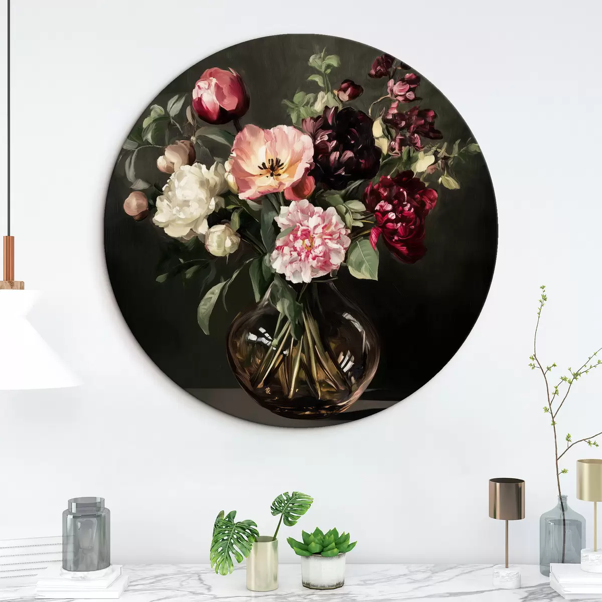 Ronde schilderijen Boeket op donkere achtergrond Nr r43912