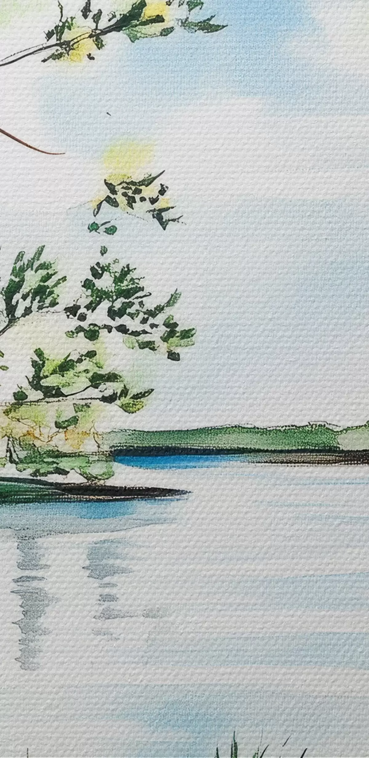 Ronde schilderijen Bomen bij het meer Nr r43921