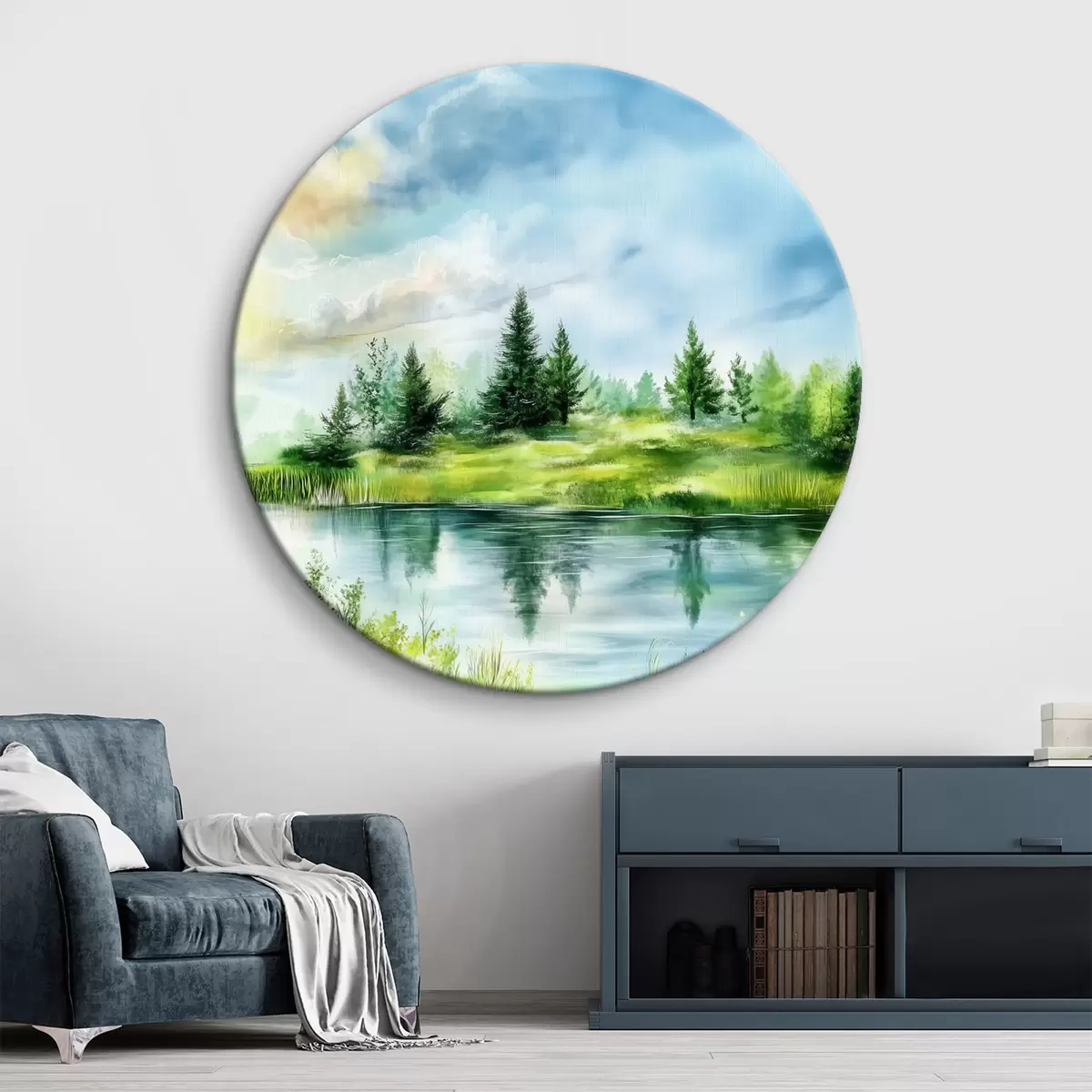 Ronde schilderijen Prachtig uitzicht op het meer Nr r43923