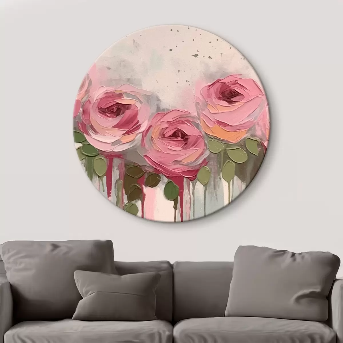 Ronde schilderijen Roze bloemen abstractie Nr r43934