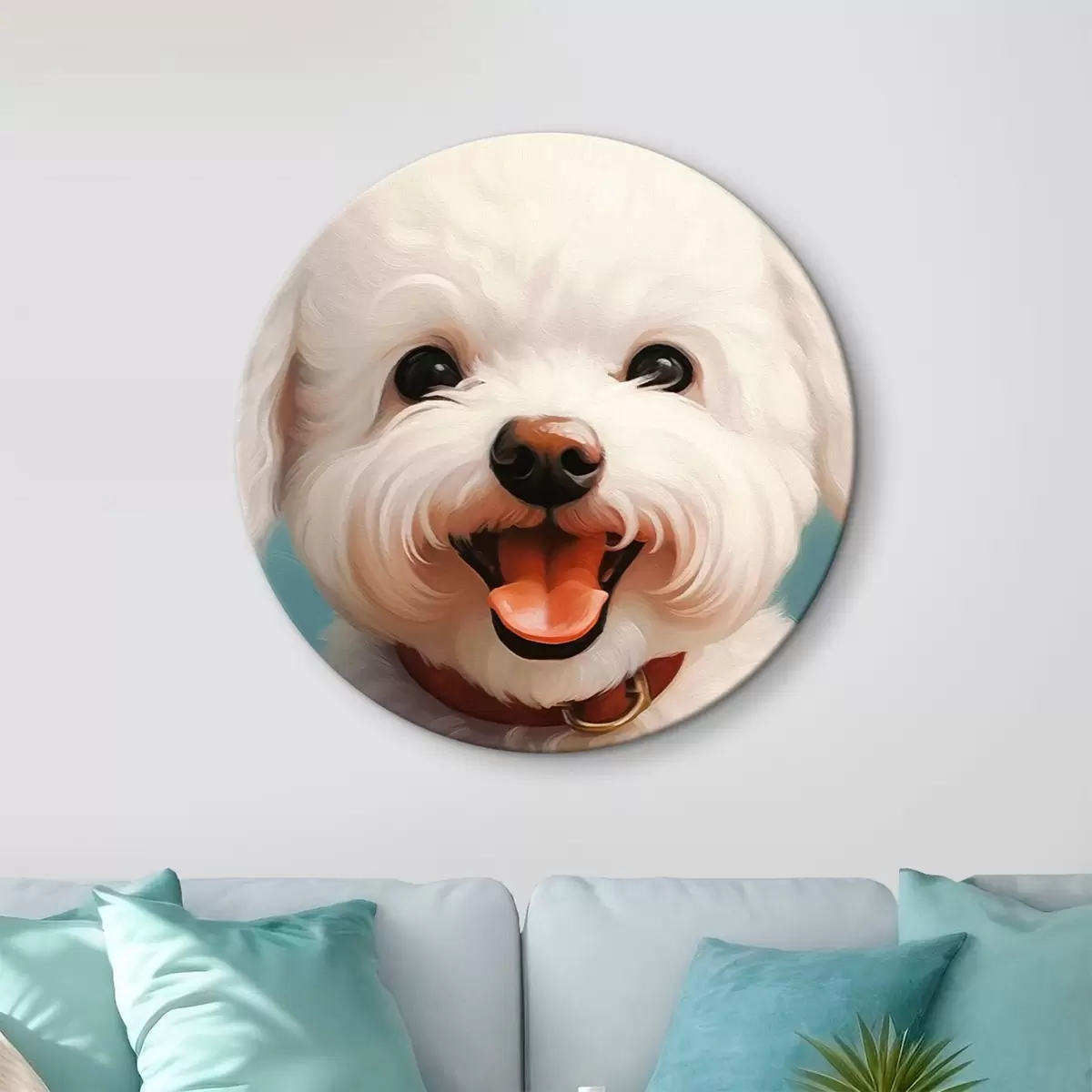 Ronde schilderijen Vrolijke witte hond Nr r43935