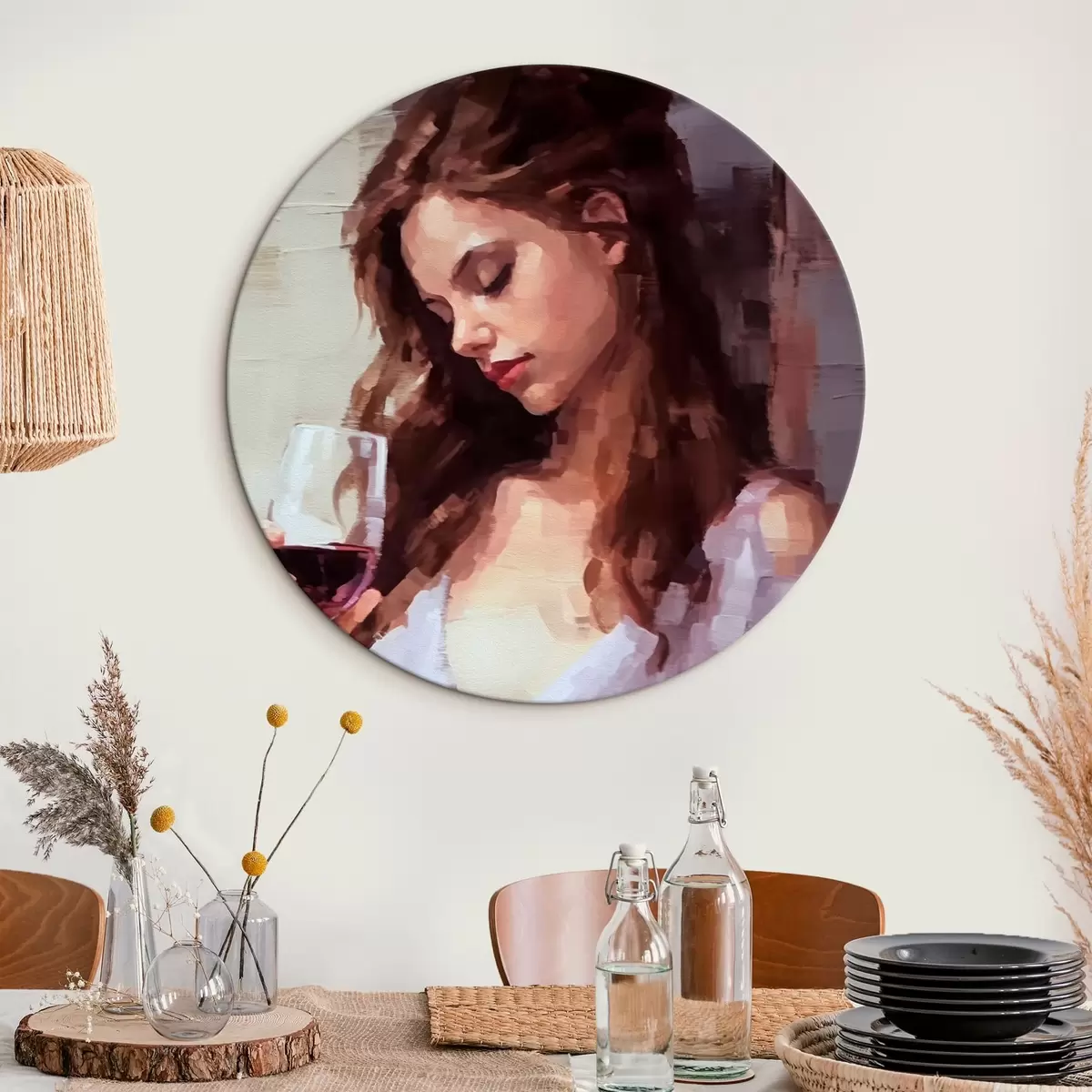 Ronde schilderijen Meisje met een glas wijn Nr r43940