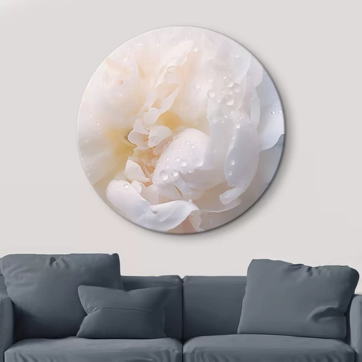 Ronde schilderijen Witte bloem met dauw Nr r43953