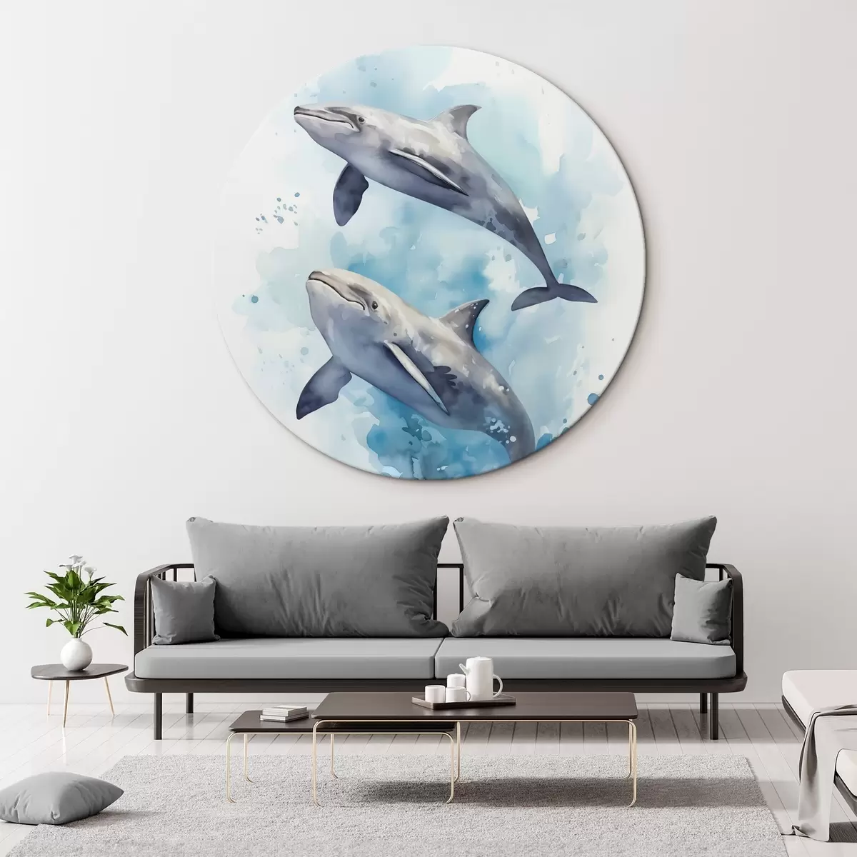 Ronde schilderijen Walvissen imitatie aquarel Nr r43957