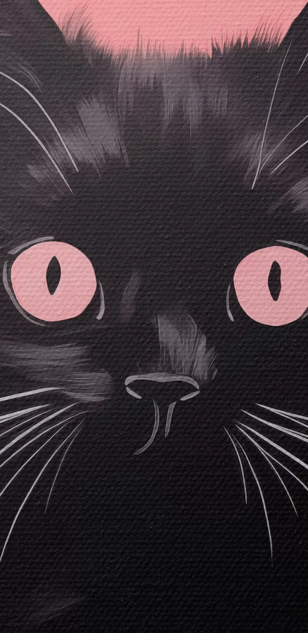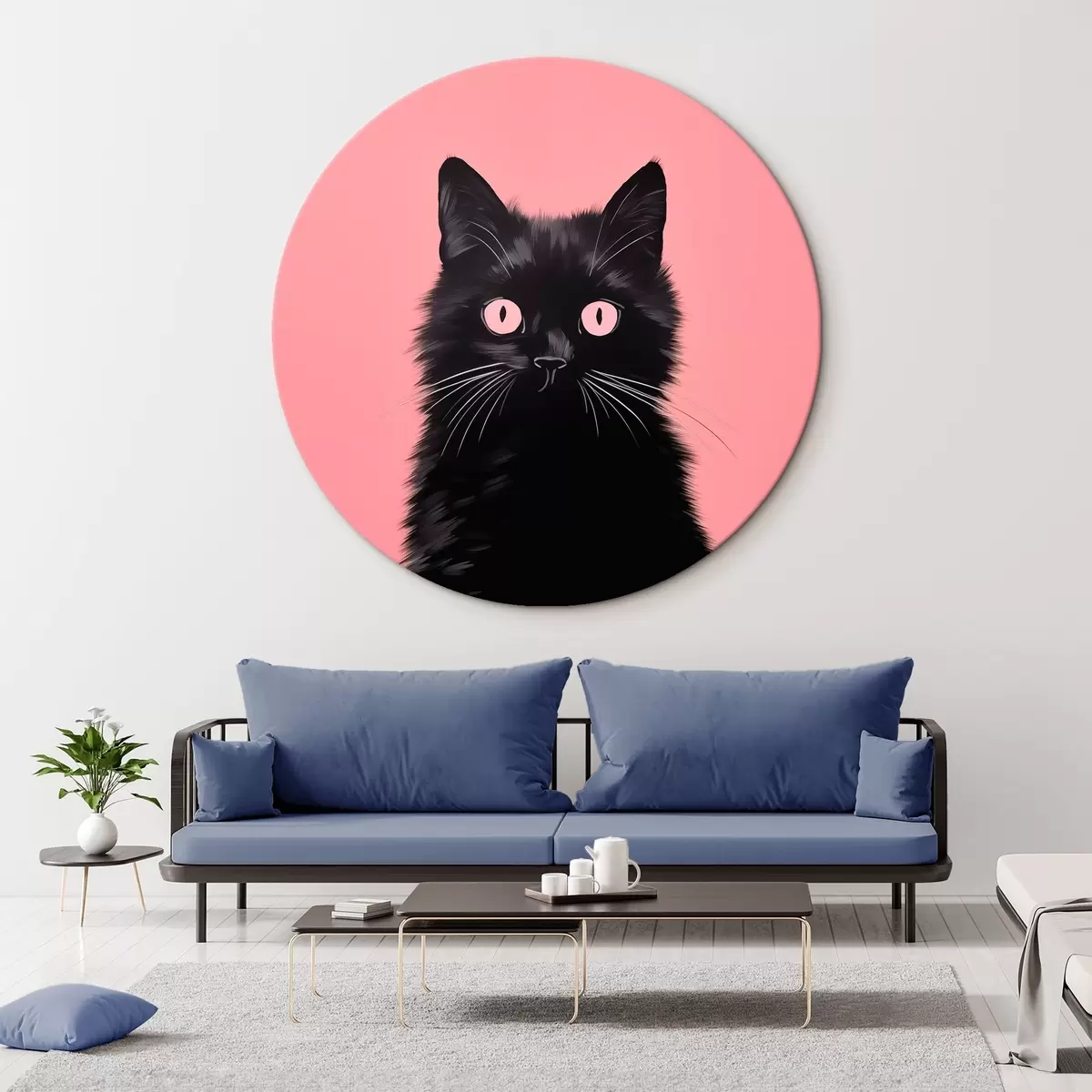 Ronde schilderijen Zwarte kat op roze Nr r43963