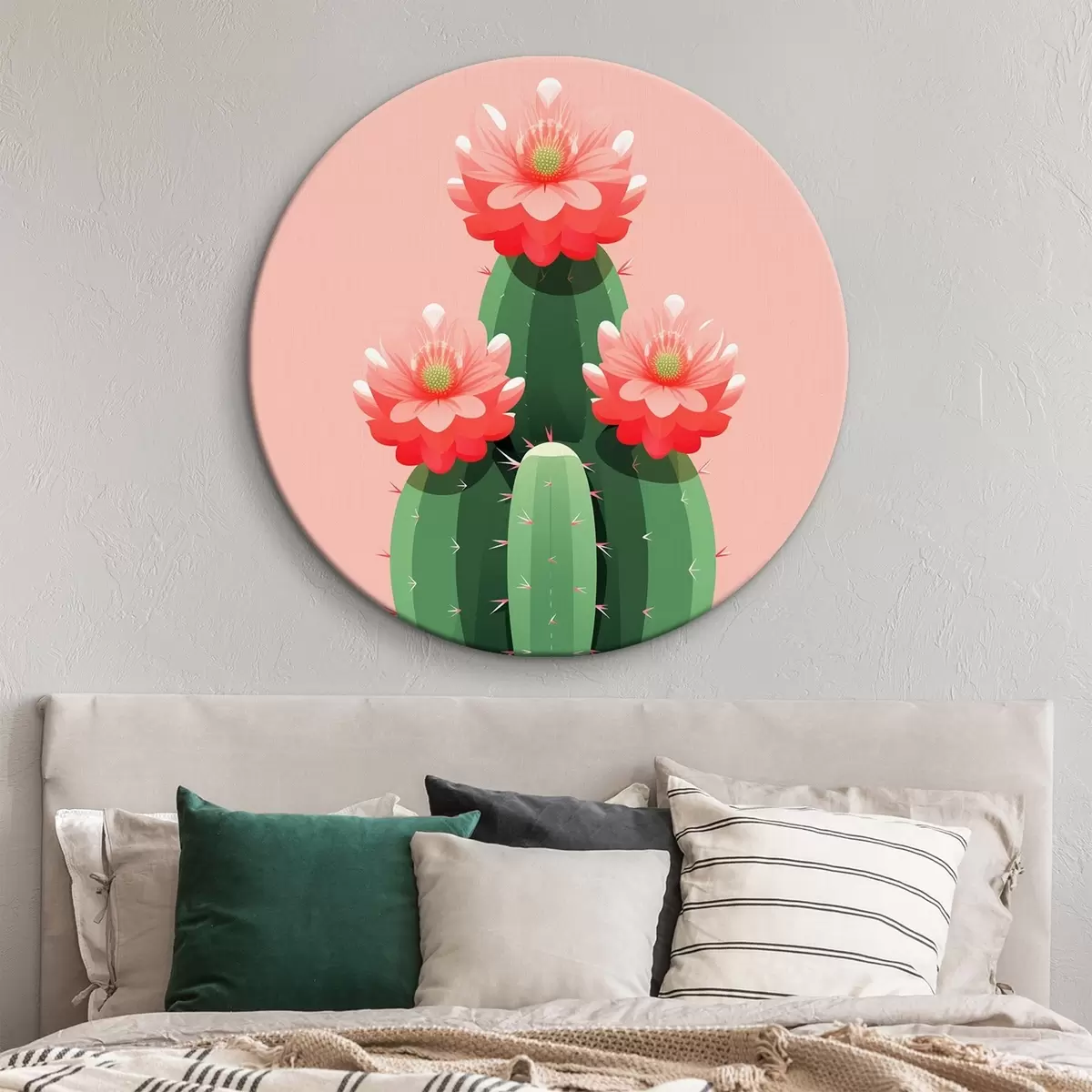 Ronde schilderijen Bloeiende cactus in een pot Nr r43996