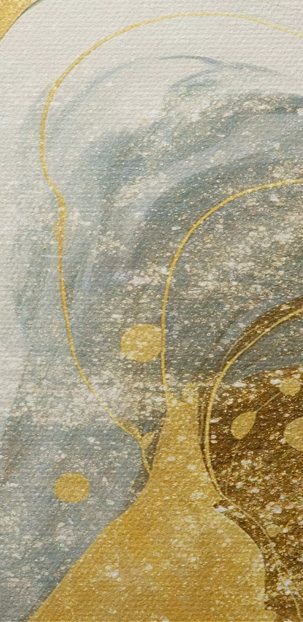 Het schilderij kan direct na ontvangst worden opgehangen. Het schilderij wordt opgespannen op een 2 cm breed houten spieraam.