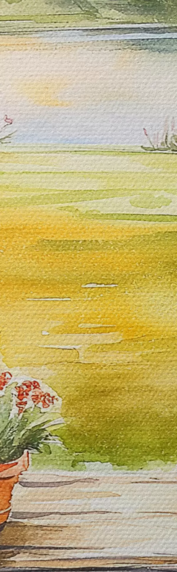 Het schilderij kan direct na ontvangst worden opgehangen. Het schilderij wordt opgespannen op een 2 cm breed houten spieraam.