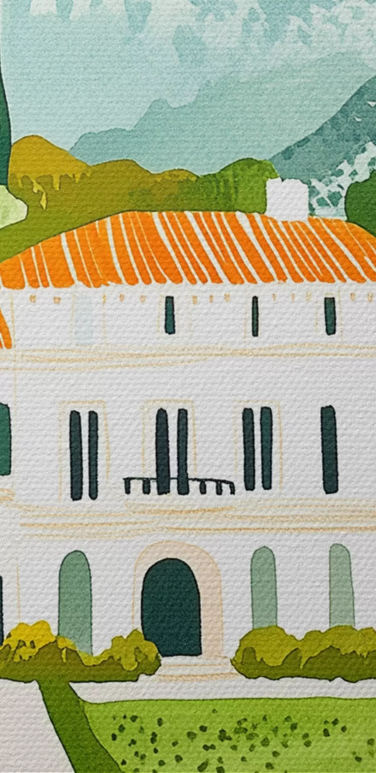 Ronde schilderijen Spanje, zomerlandschappen, citroenbomen, architecturaal, tropisch Nr r44026