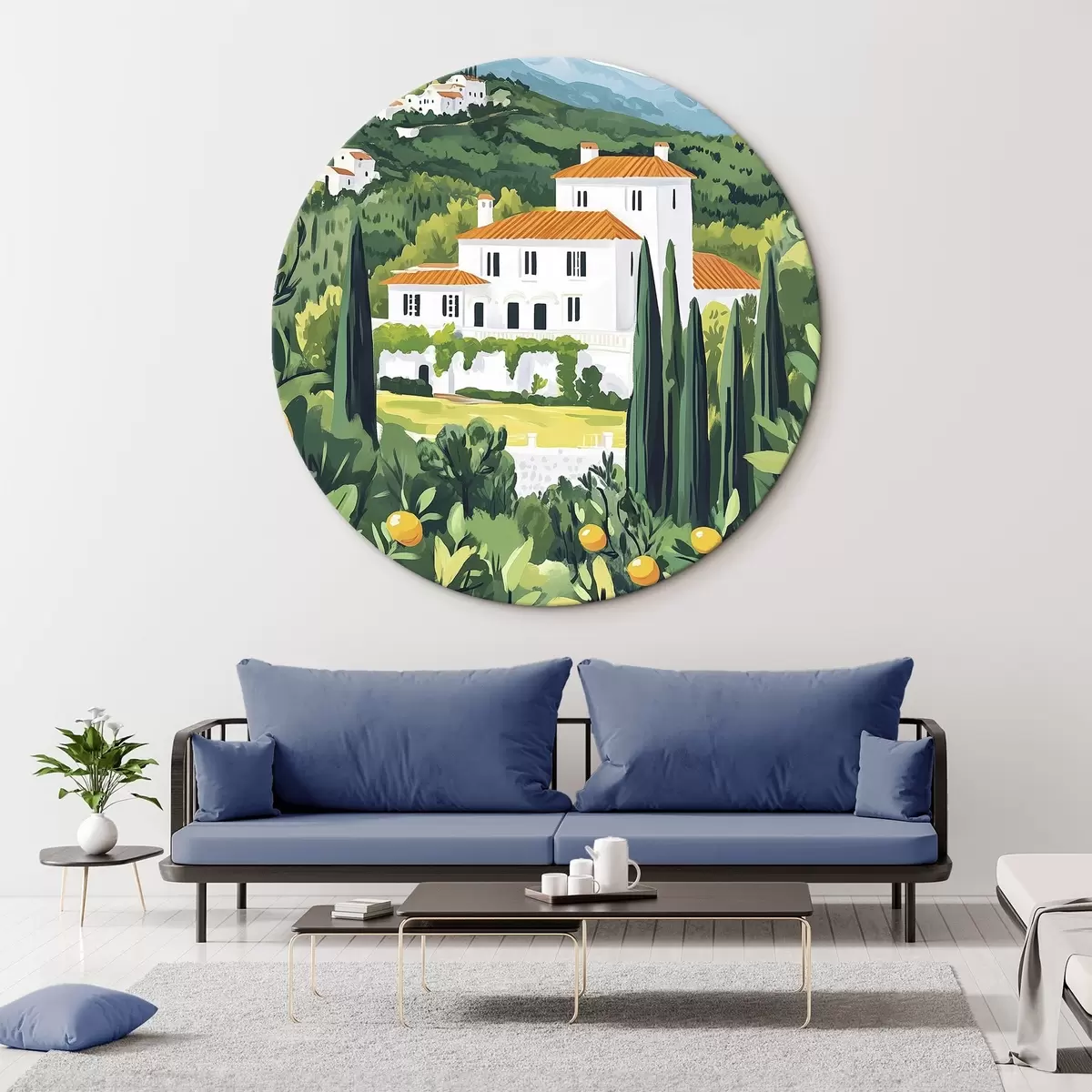 Ronde schilderijen Zomernatuur, mediterraan, citroenbomen, architecturaal Nr r44028