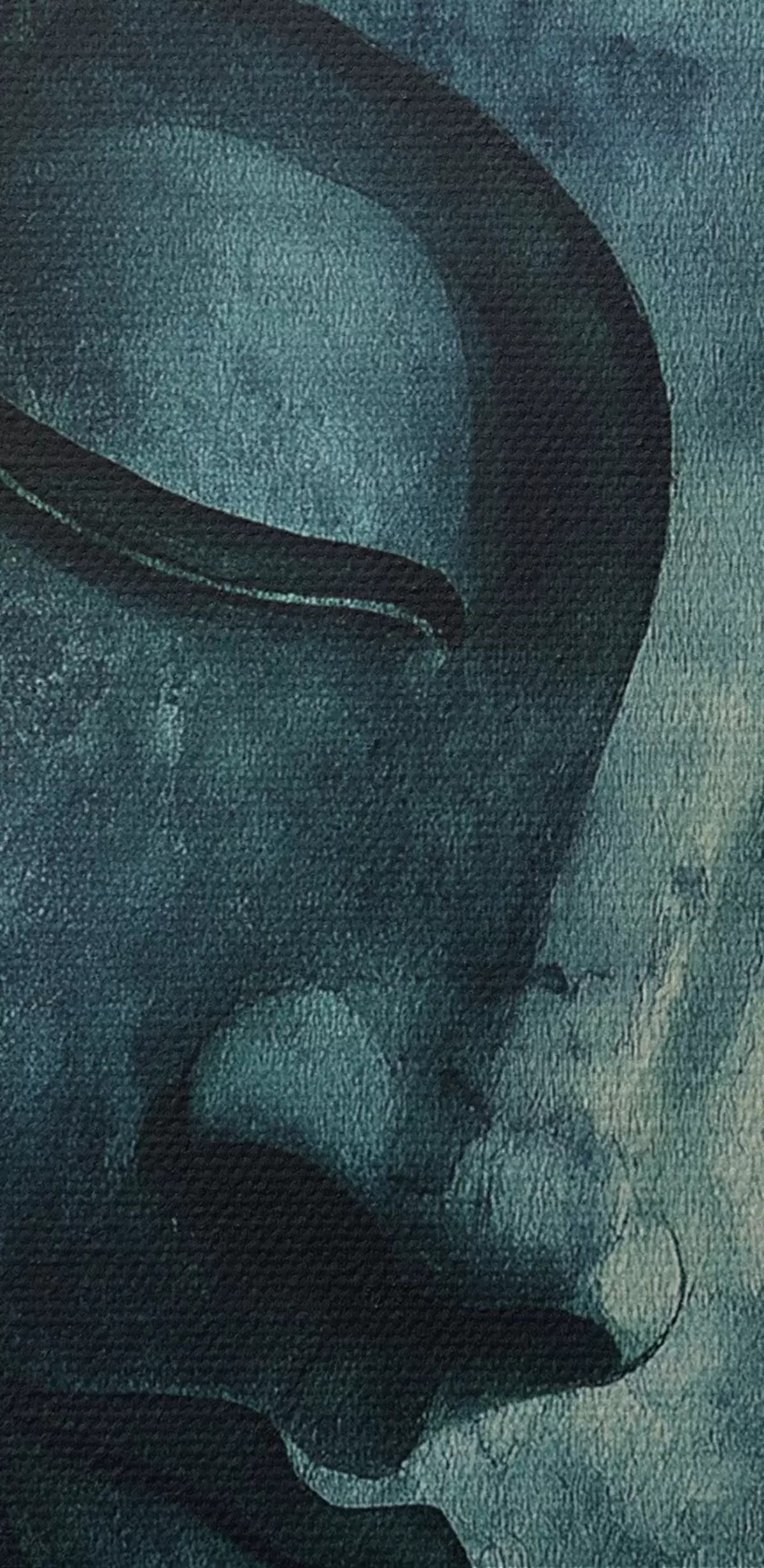 Ronde schilderijen Boeddha met gesloten ogen, meditatie, groene kleuren Nr r44030