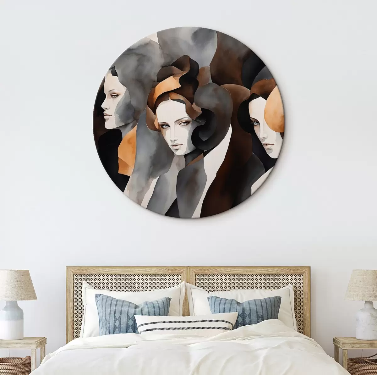 Ronde schilderijen Abstract schilderij met vrouwengezichten Nr r44060