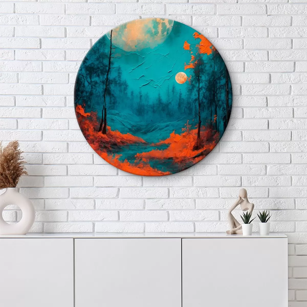 Ronde schilderijen Zwart bos in zwarte maan in olieverfschilderijstijl r44063