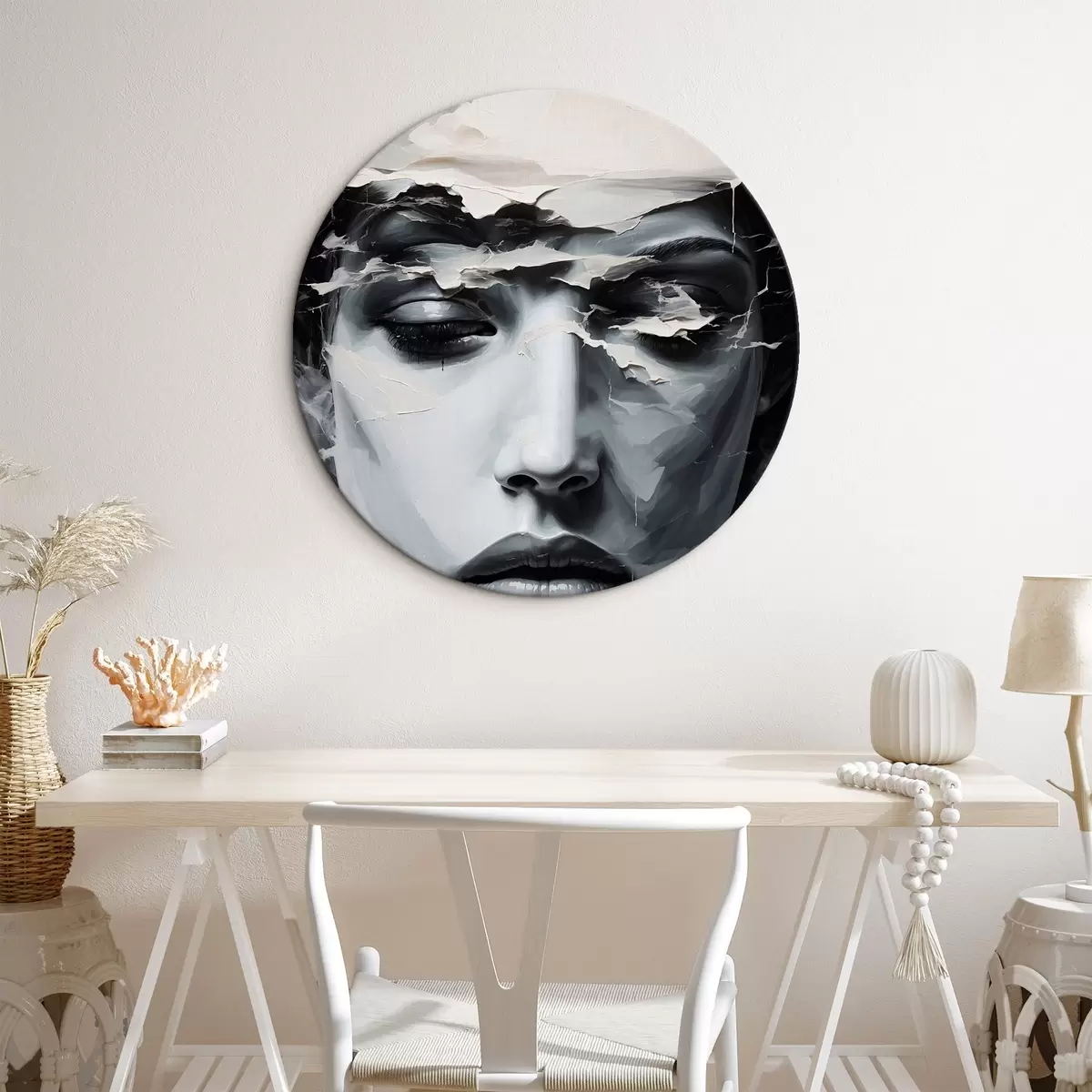Ronde schilderijen Abstract vrouwelijk gezicht in acrylschilderstijl r44070