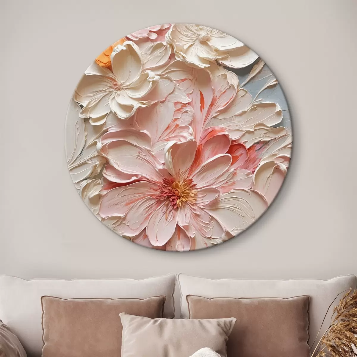 Ronde schilderijen Witte en roze bloemen op blauwe achtergrond in olieverfstijl Nr r44074
