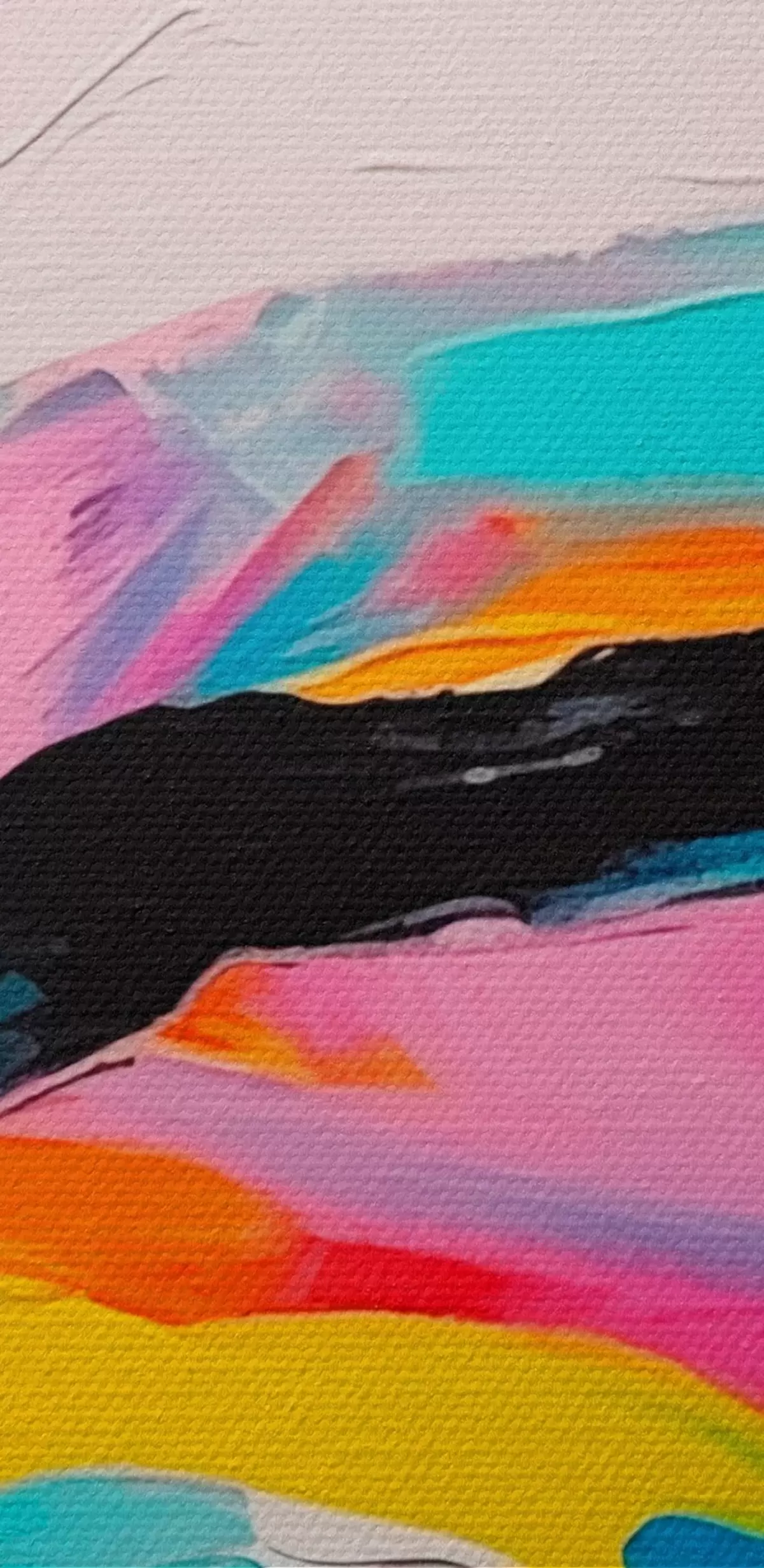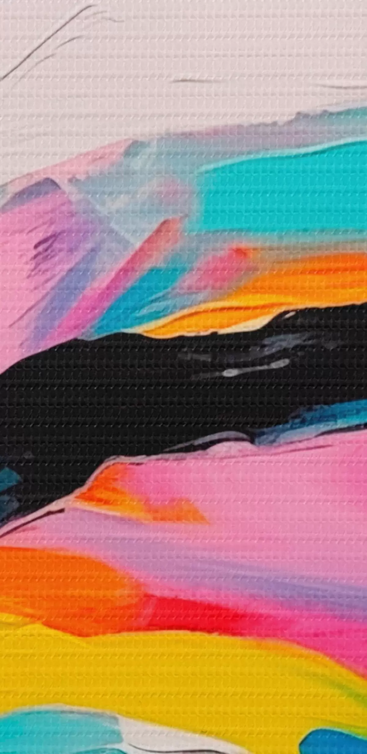 Het schilderij kan direct na ontvangst worden opgehangen. Het schilderij wordt opgespannen op een 2 cm breed houten spieraam.