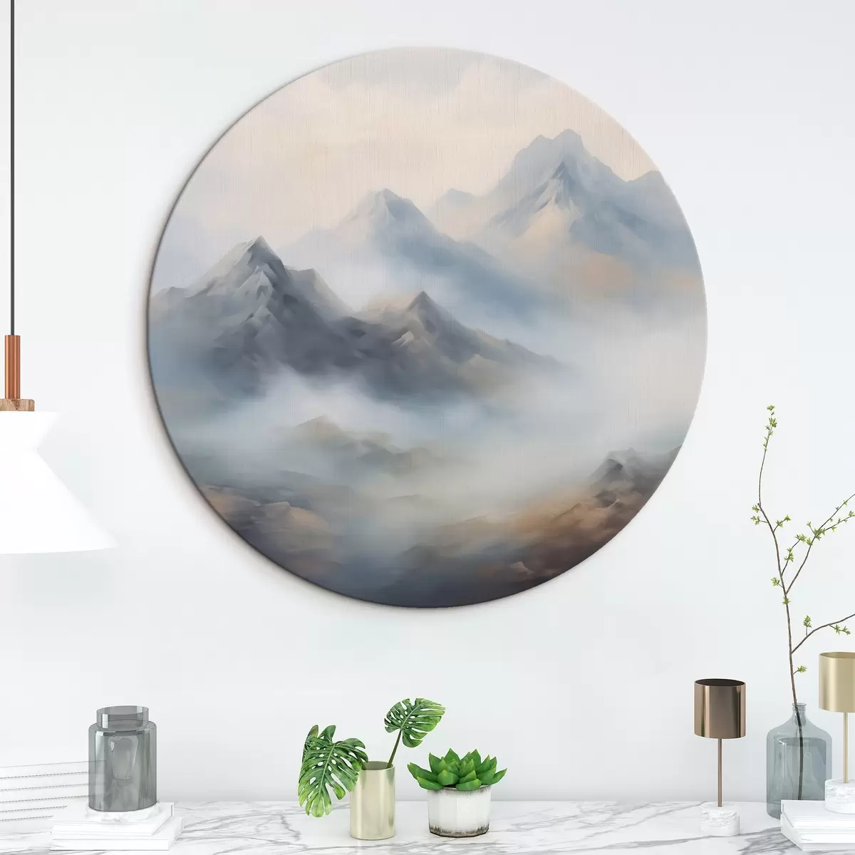 Ronde schilderijen Bergen in mist bij zonsopgang Nr r44121