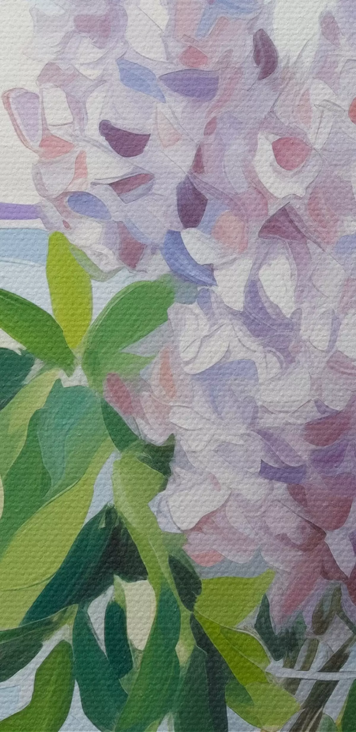 Het schilderij kan direct na ontvangst worden opgehangen. Het schilderij wordt opgespannen op een 2 cm breed houten spieraam.