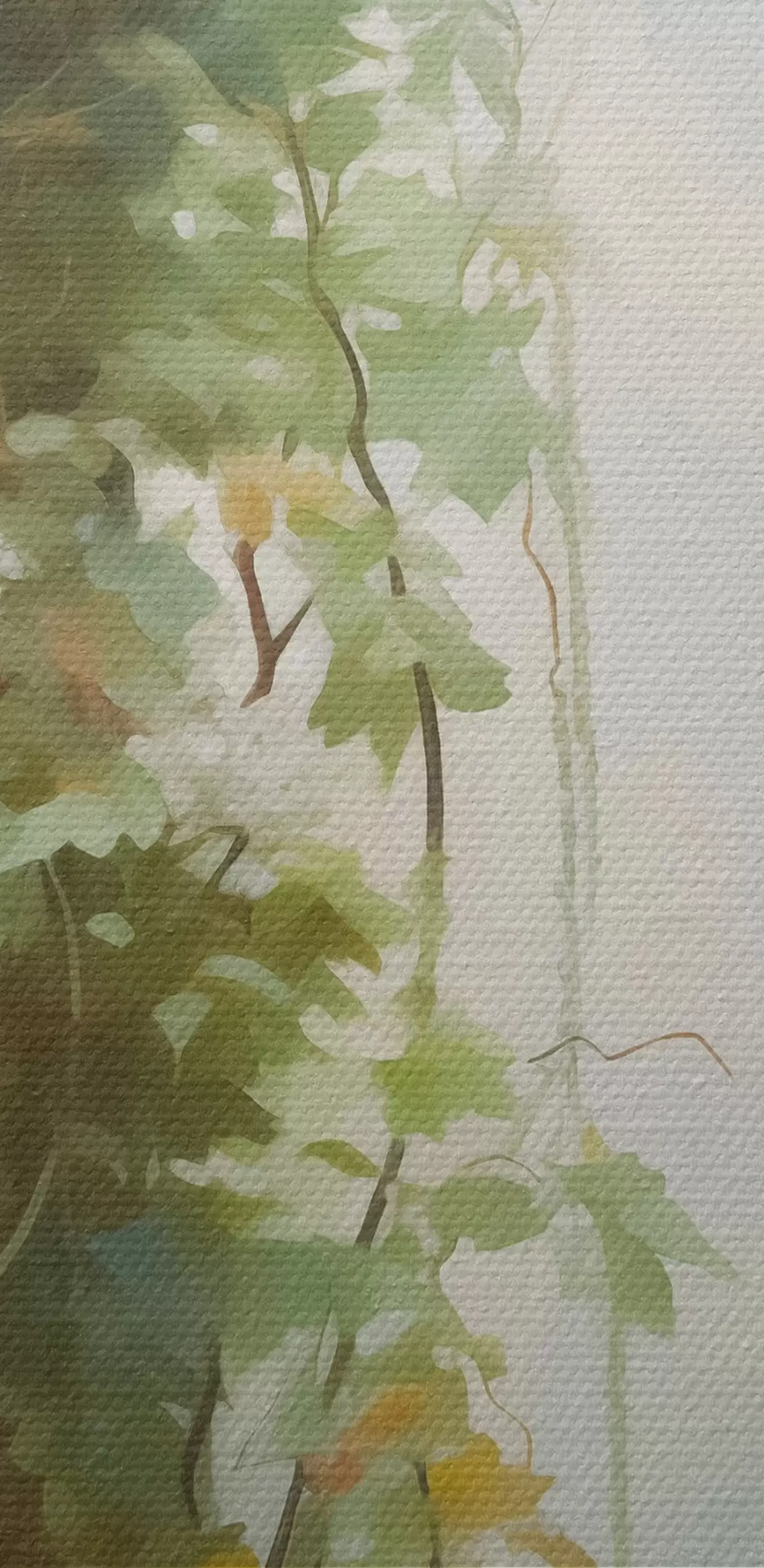 Het schilderij kan direct na ontvangst worden opgehangen. Het schilderij wordt opgespannen op een 2 cm breed houten spieraam.