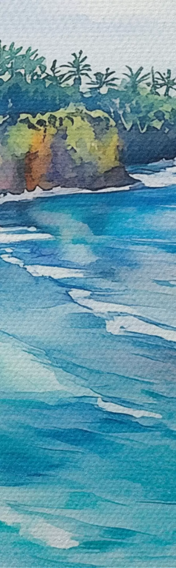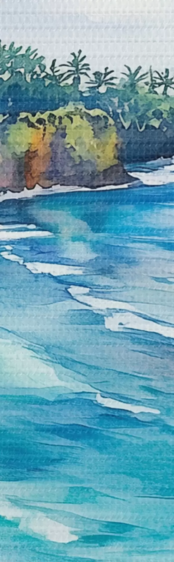 Ronde schilderijen Tropisch oceaanstrand, palmbomen, bloemen, aquarelstijl Nr r44145