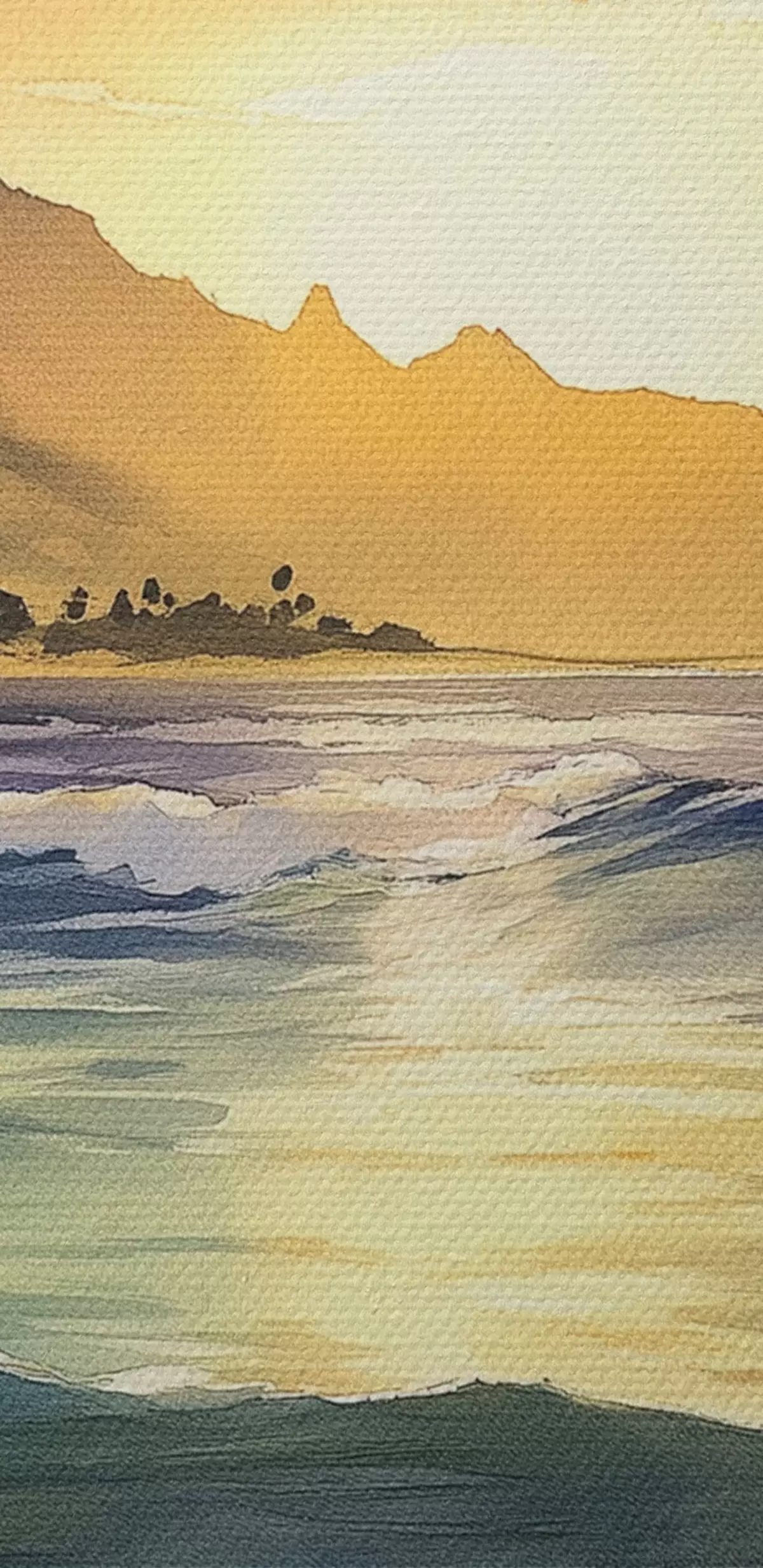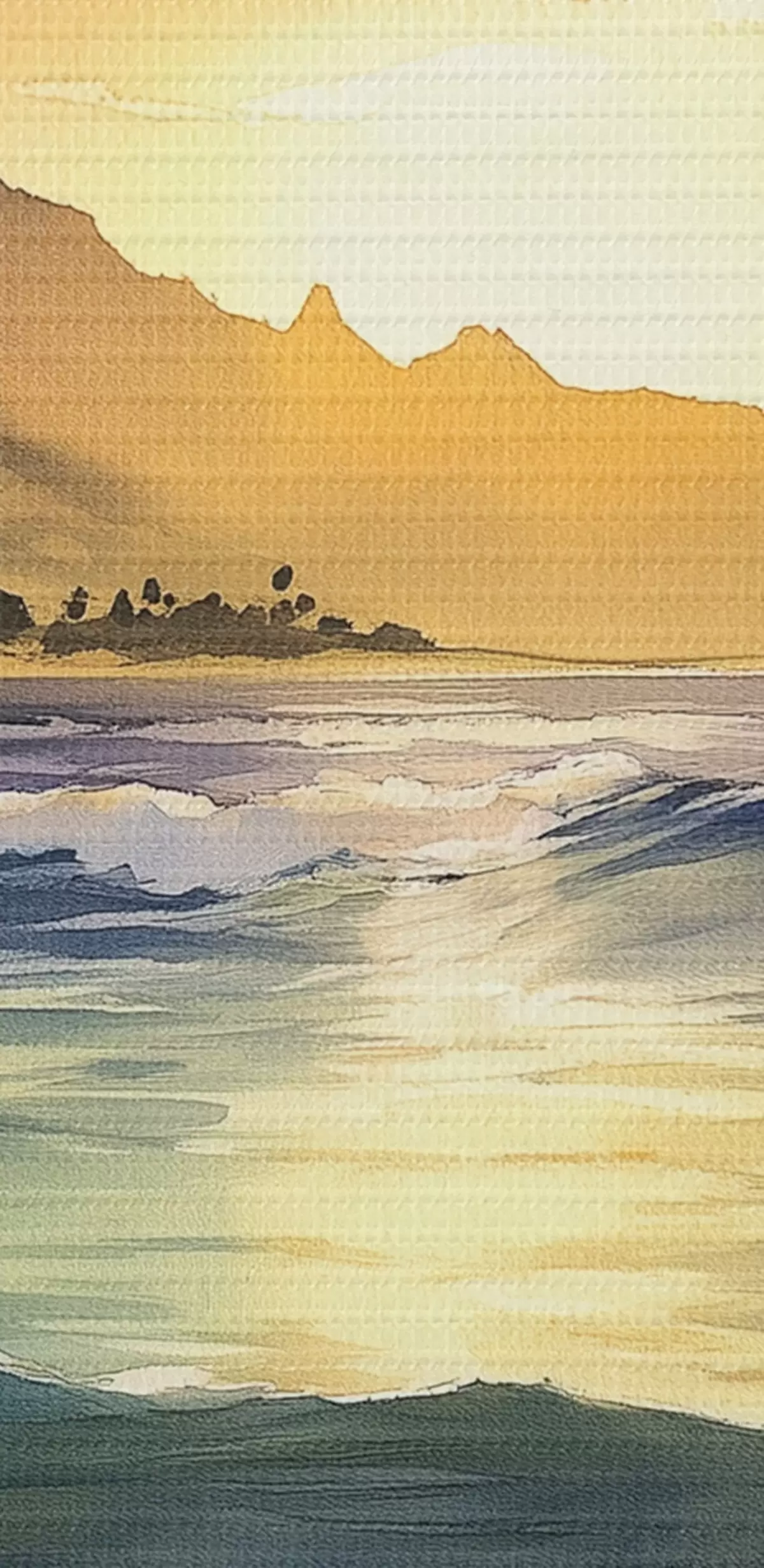 Ronde schilderijen Oceaangolven, zonsondergang, aquarel, natuur Nr r44147