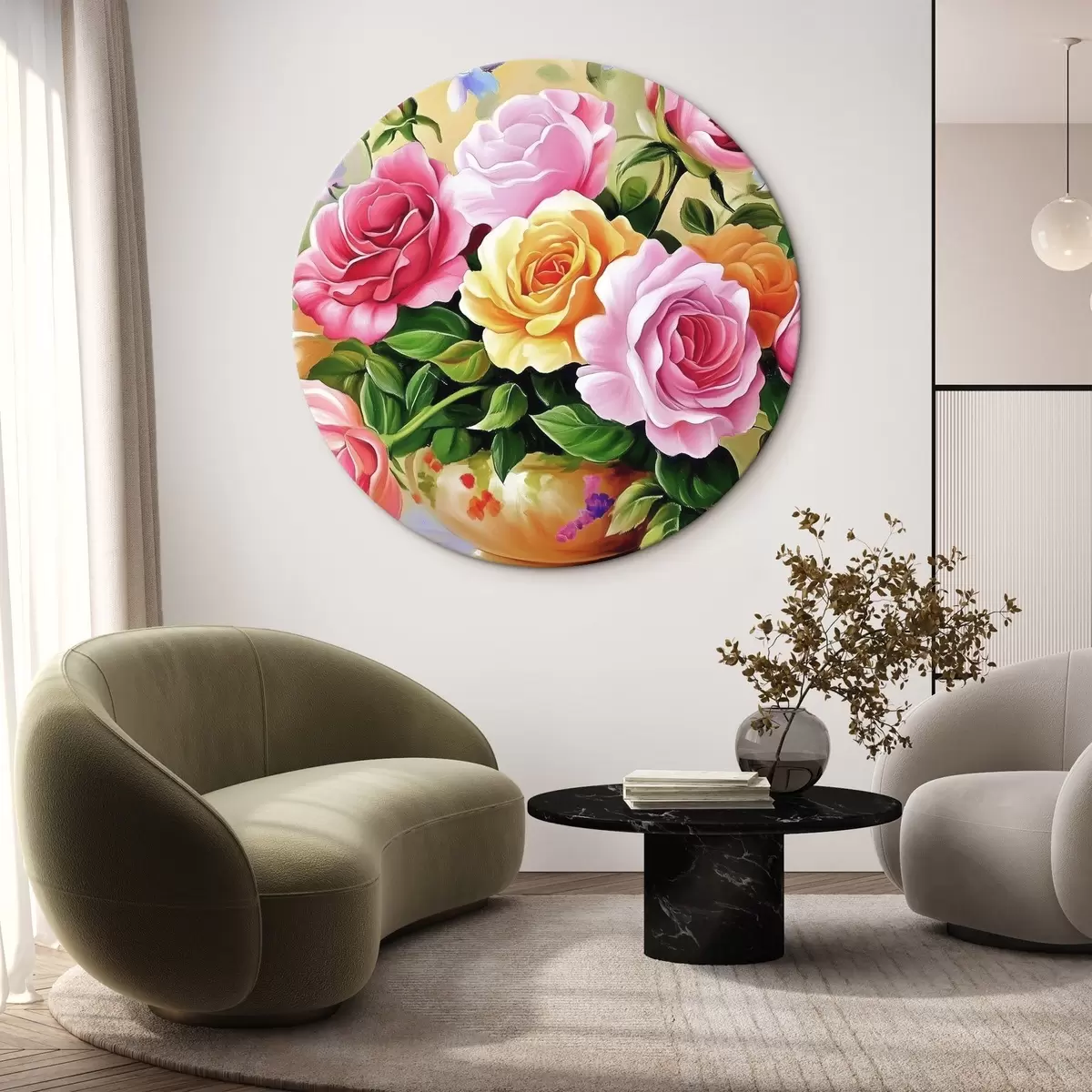 Ronde schilderijen Weelderig boeket van heldere bloemen Nr r44217