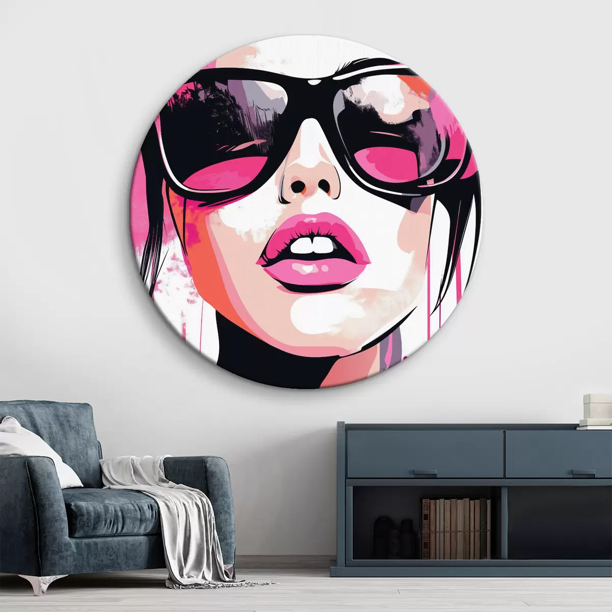 Ronde schilderijen Portret van een meisje met bril Nr r44219