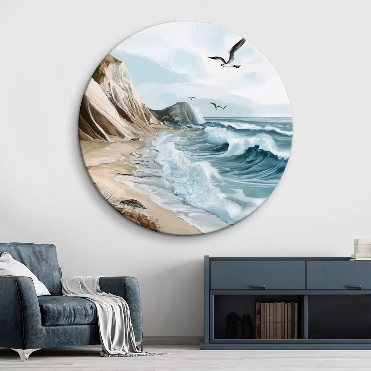 Ronde schilderijen Zandstrand en vogels Nr r44222