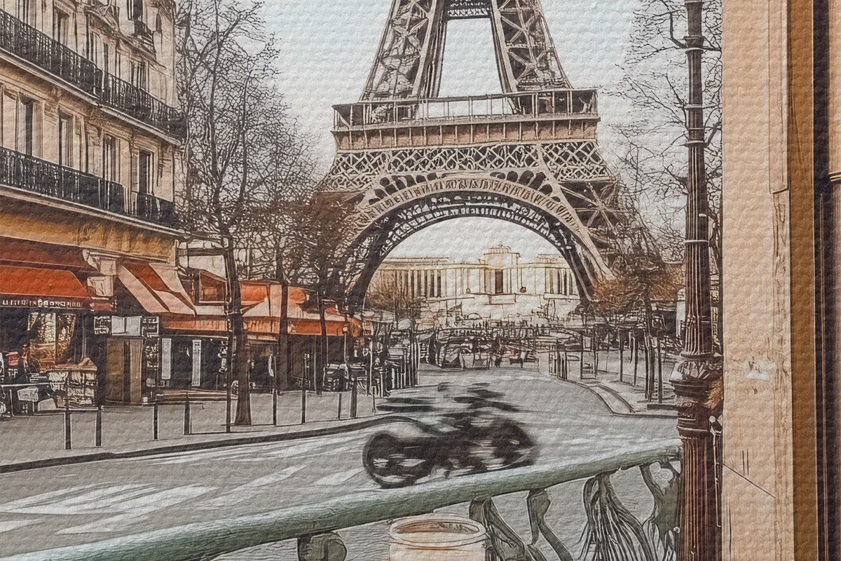 Ronde schilderijen Uitzicht op de Eiffeltoren r44225