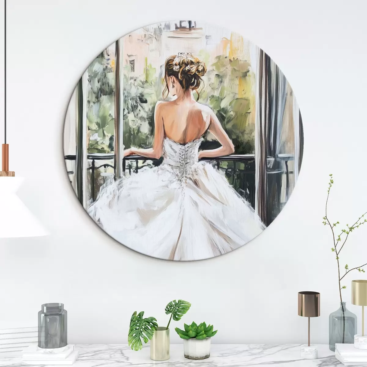 Ronde schilderijen Meisje in een witte jurk op het balkon r44226